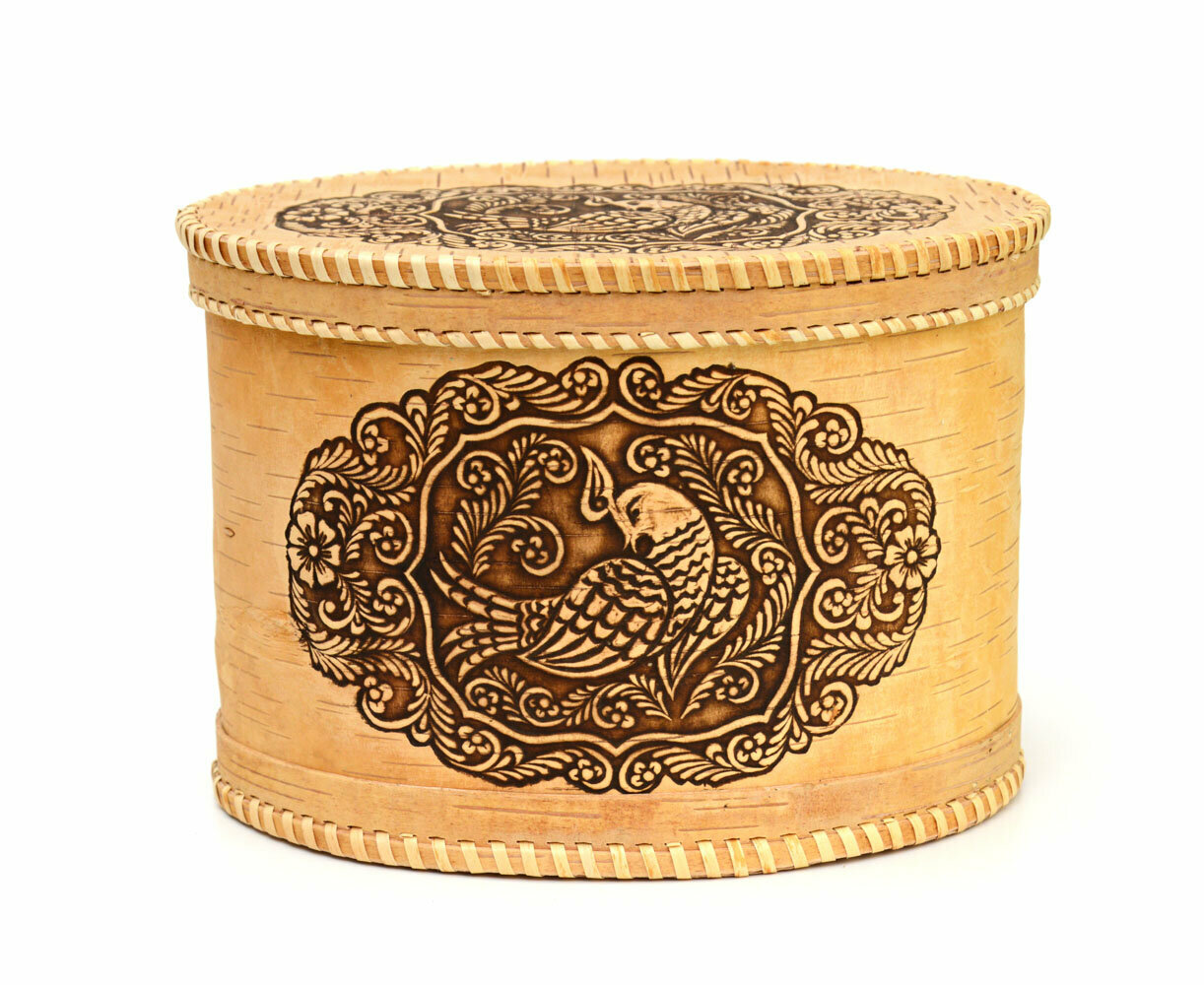 Хлебница из бересты овальная "Жар-птица". Короб из бересты информация: