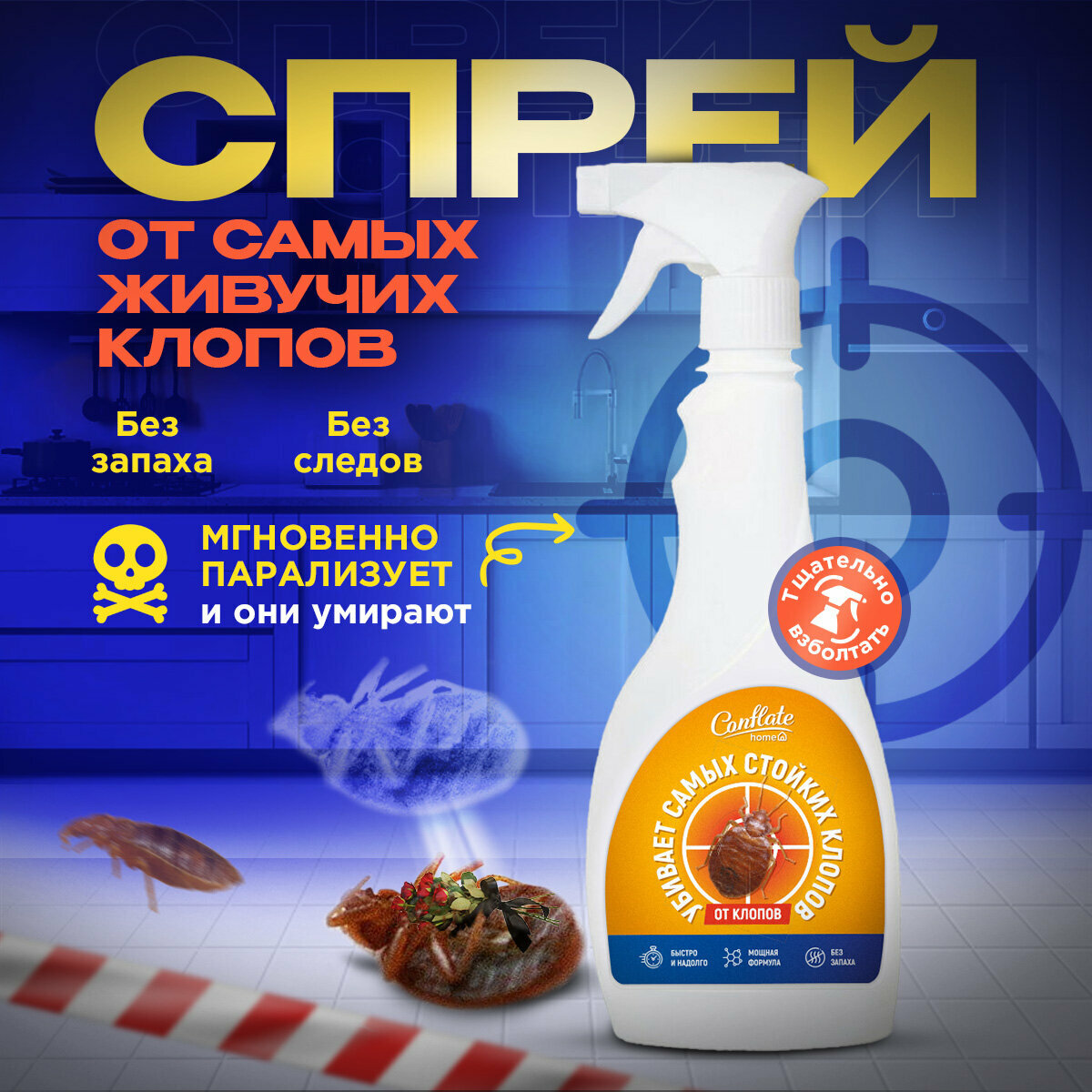 Средство против постельных клопов Conflate home, спрей отрава без запаха 400 мл информация: