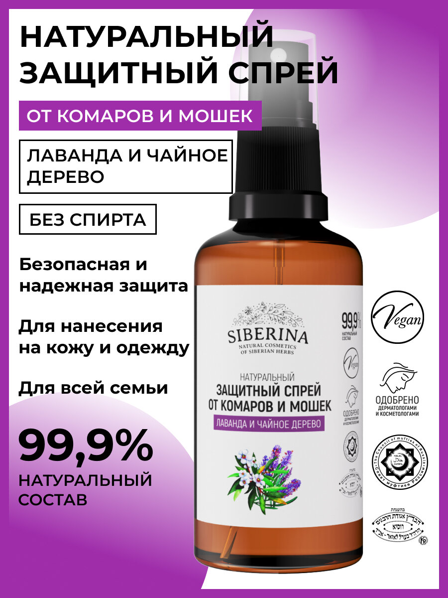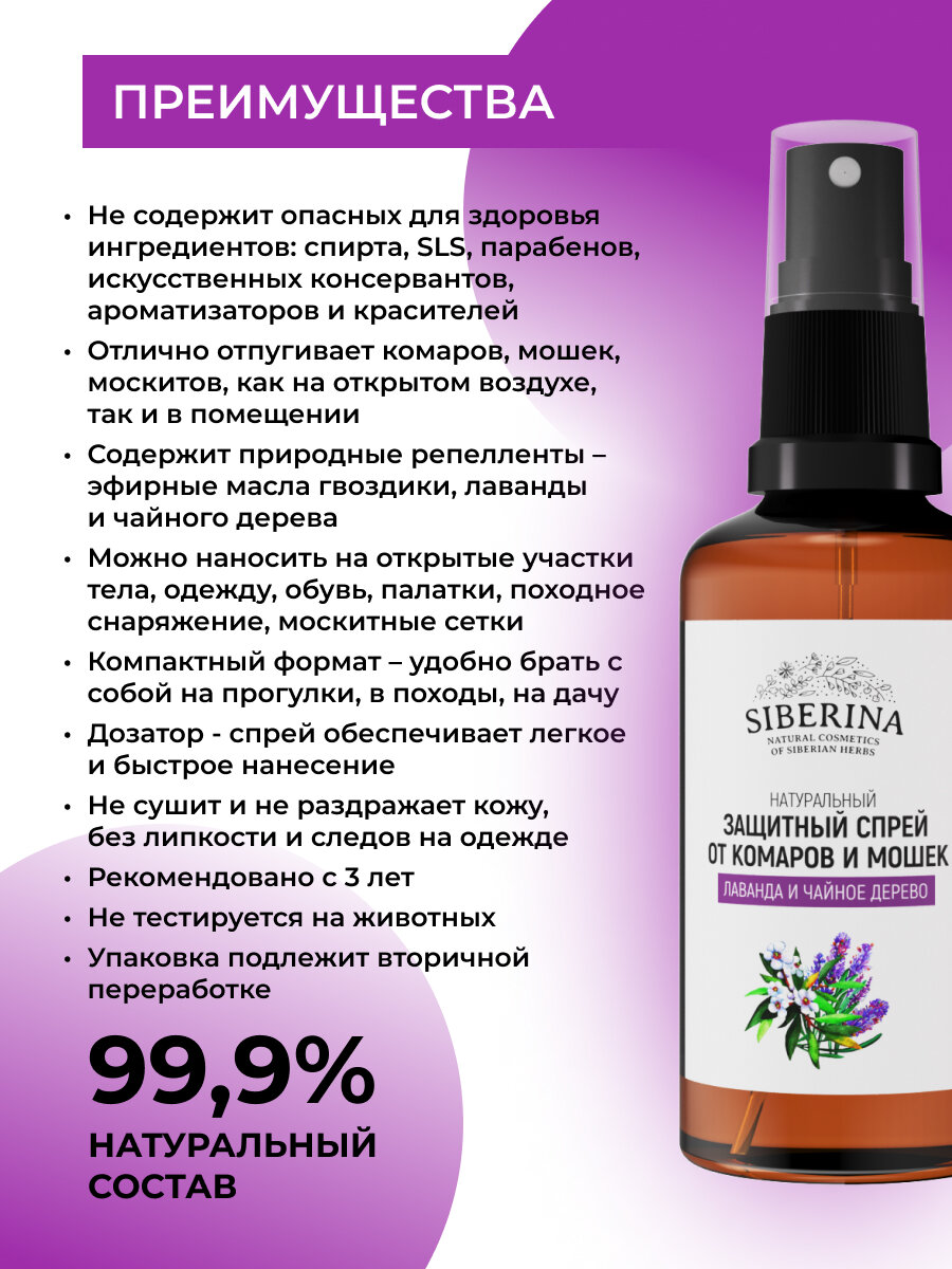 Siberina Защитный спрей от комаров и мошек "Лаванда и чайное дерево", 50 мл информация: