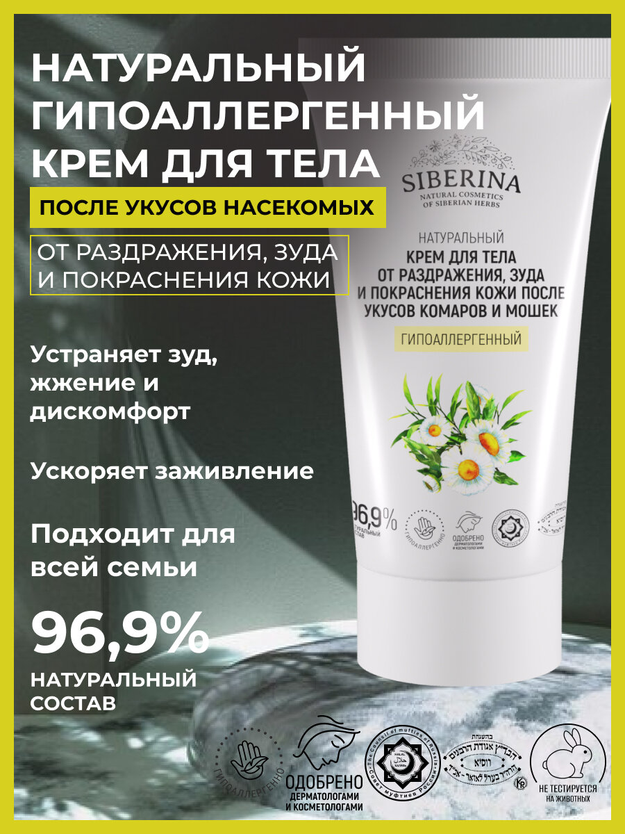 Siberina Крем для тела от раздражения, зуда и покраснения кожи после укусов комаров и мошек гипоаллергенный, 50 мл информация:
