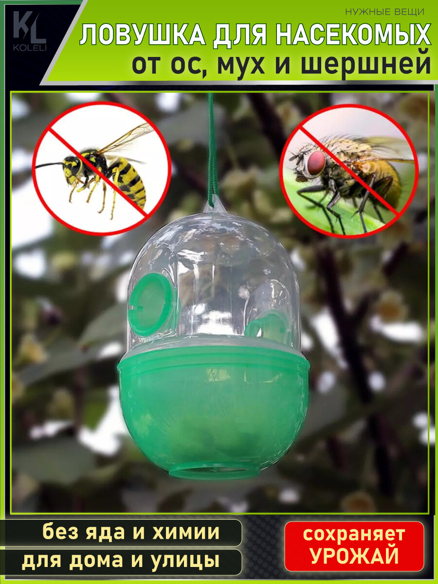 10 цен на KoLeli / Подвесная ловушка для ос, мух и шершней / защита от насекомых / контейнер от вредителей, зеленая