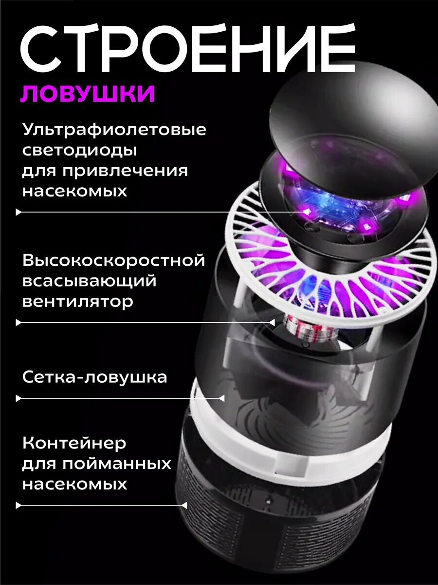 Антимоскитная лампа, мухоловка электрическая, лампа от комаров и насекомых, мухобойка, ловушка электрическая УФ информация:
