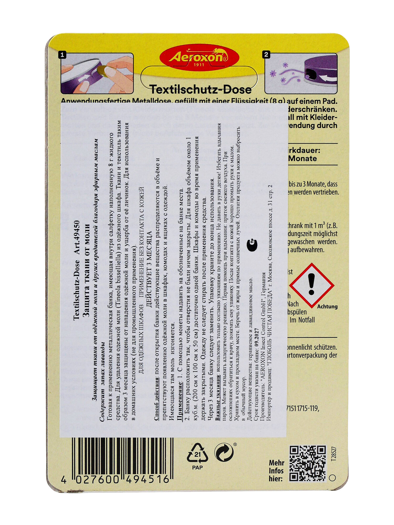 AEROXON ( Аэроксон ) Бокс с натуральным лавандовым маслом ДЛЯ ЗАЩИТЫ ОТ МОЛИ на целый сезон (Германия) информация: