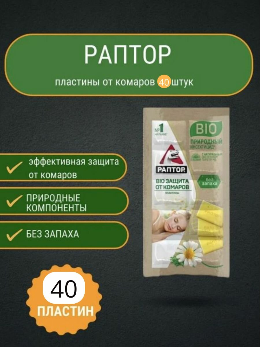 Отзывы на Пластины от комаров Раптор "Bio", с экстрактом ромашки 40 пластинок