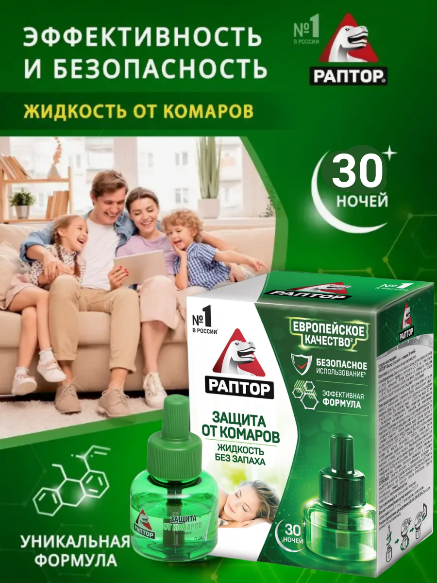 10 цен на Жидкость Раптор, для фумигаторов, без запаха, от комаров, 35мл, 30ночей,2штуки