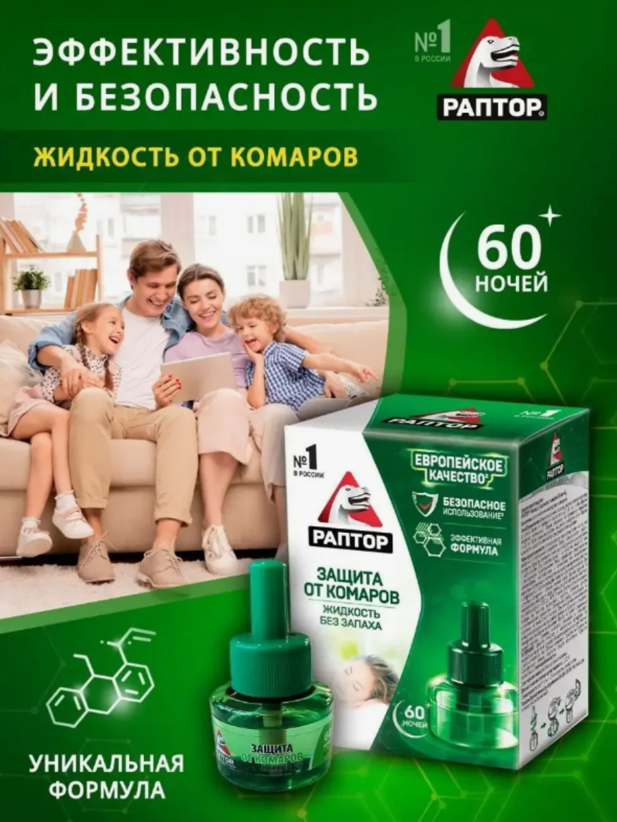 10 цен на Жидкость Раптор, для фумигаторов, без запаха, от комаров, 35мл, 60ночей