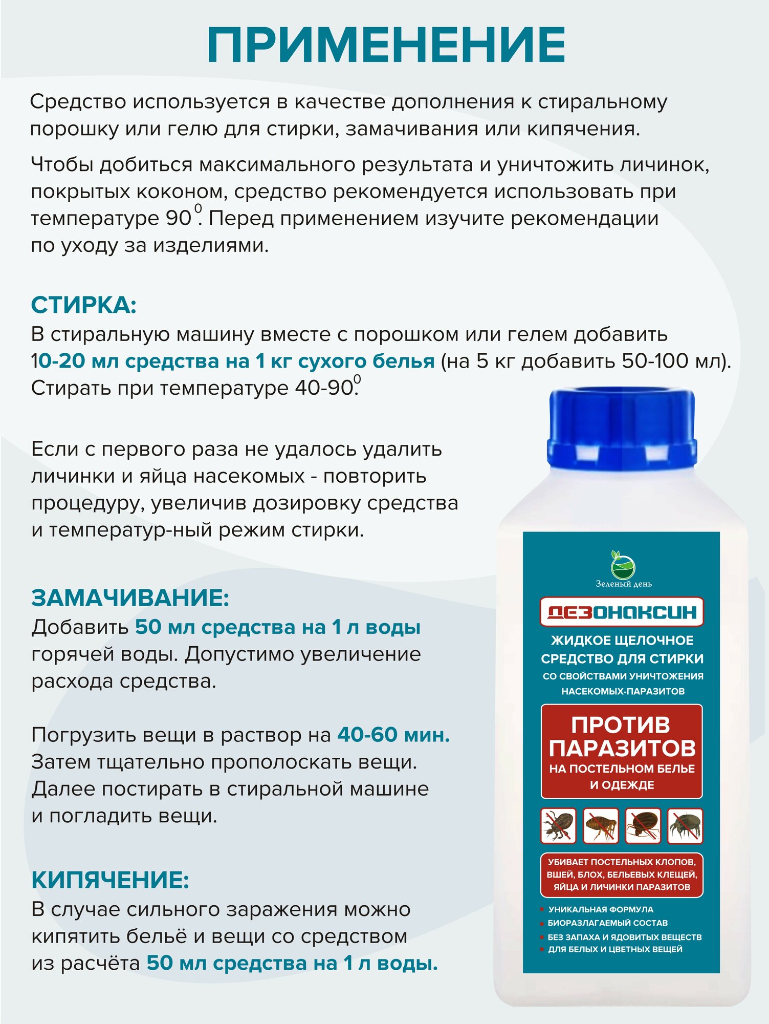 Средство для стирки и уборки от клопов, вшей, постельных клещей Дезонаксин, 500 мл информация: