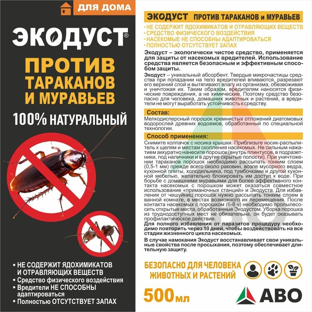 10 цен на Средство от тараканов и муравьев домашних Экодуст 500 мл.