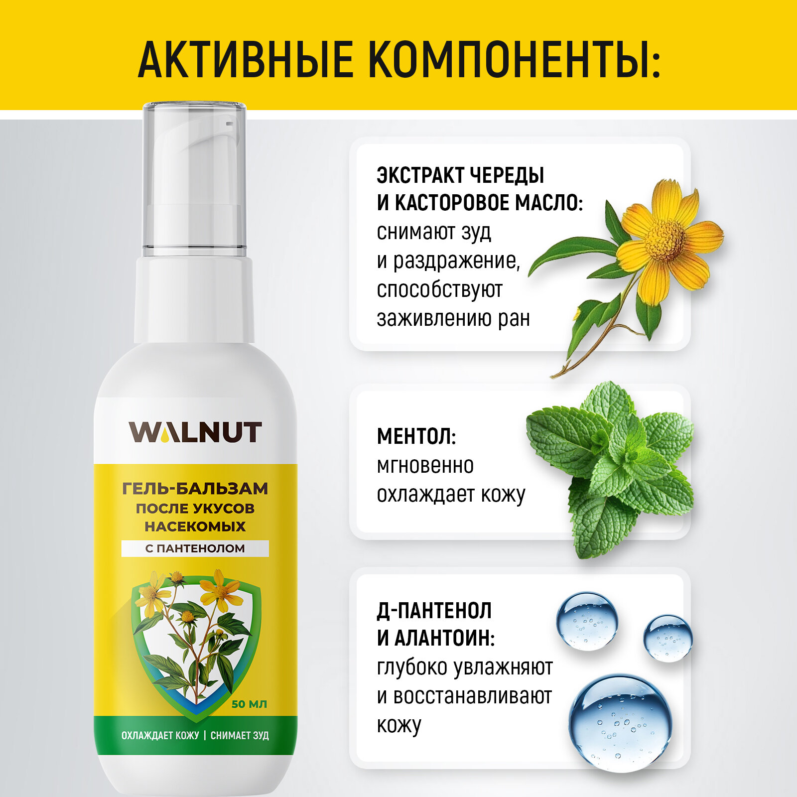 Гель-бальзам после укусов насекомых, солнечных ожогов, ожогов крапивы и укусов медузы, 50 г информация: