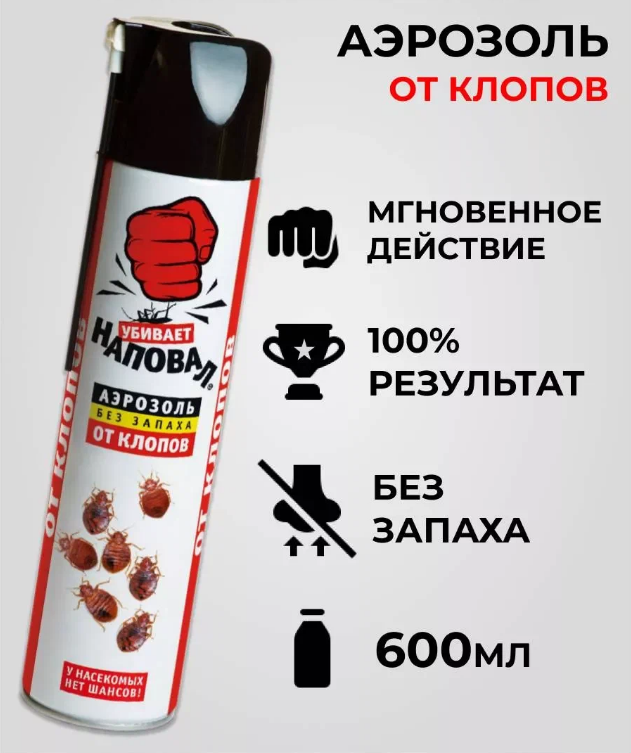 Аэрозоль от клопов Наповал, без запаха, 600 мл, высокоэффективное средство информация: