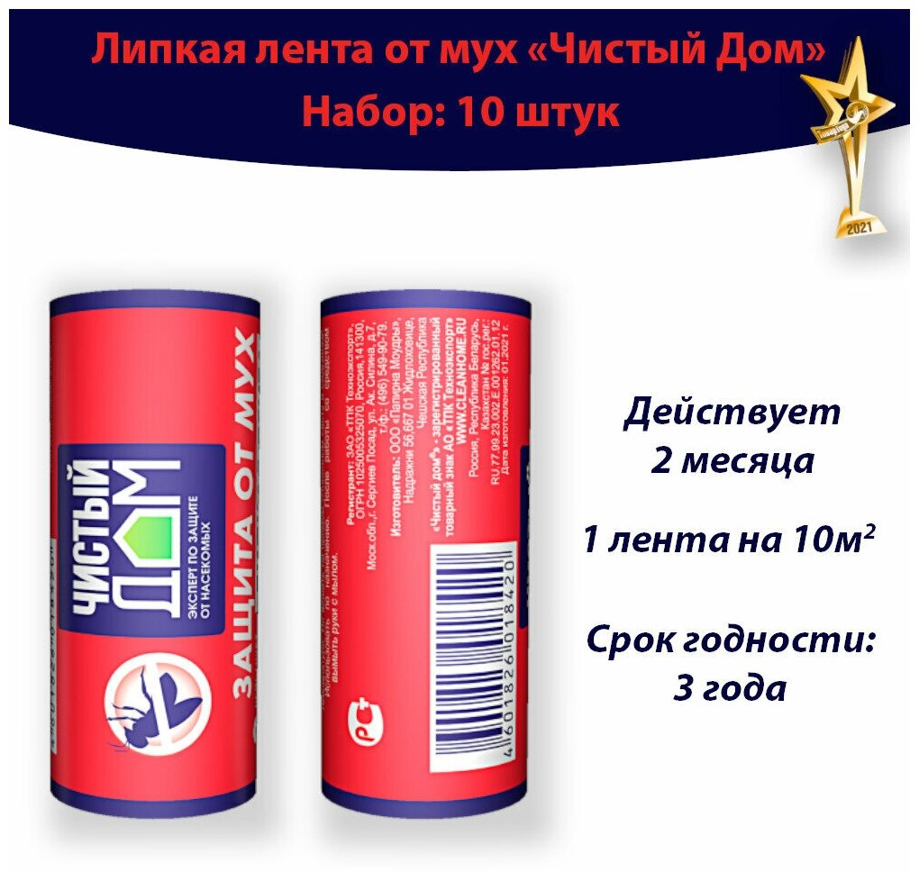 10 цен на Липкая лента от мух с аттрактантом "Чистый дом" (комплект 10 шт.), крепление кнопка