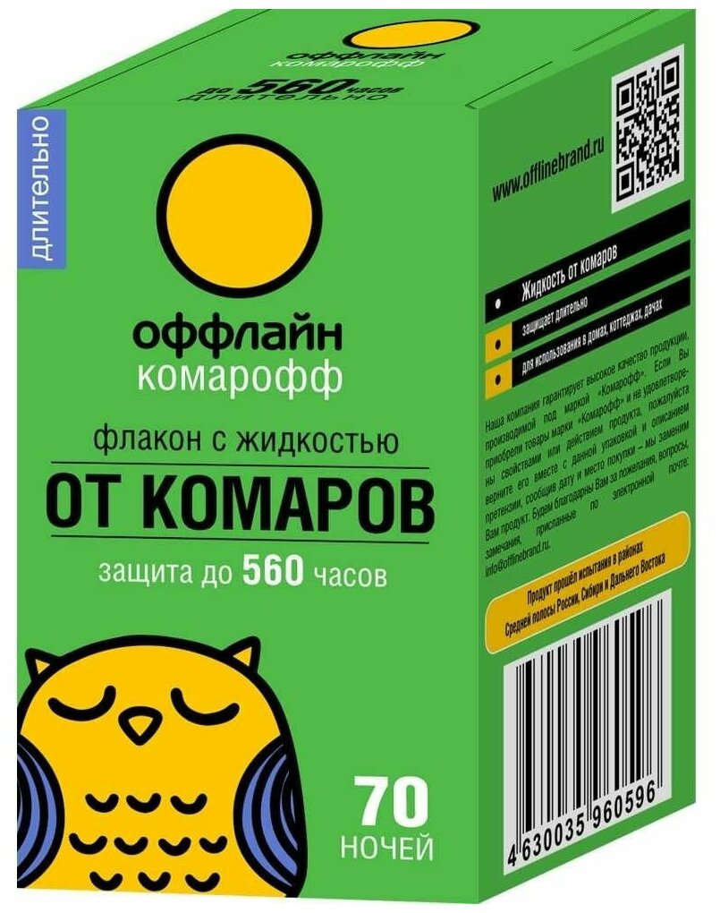 Отзывы на Жидкость Комарофф оффлайн длительно 70 ночей, без запаха, флакон 45 мл OF01070051
