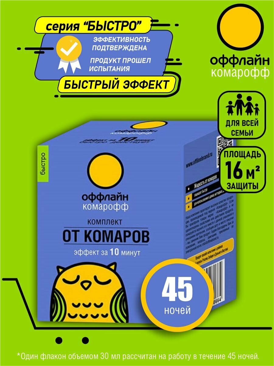Комплект от комаров Быстро Комарофф оффлайн 45 ночей 30 мл. без запаха информация: