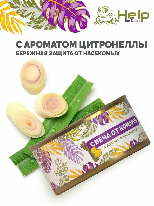 Набор свечей уличных 2шт. от комаров, в жестяной банке, цитронелла, HELP информация: