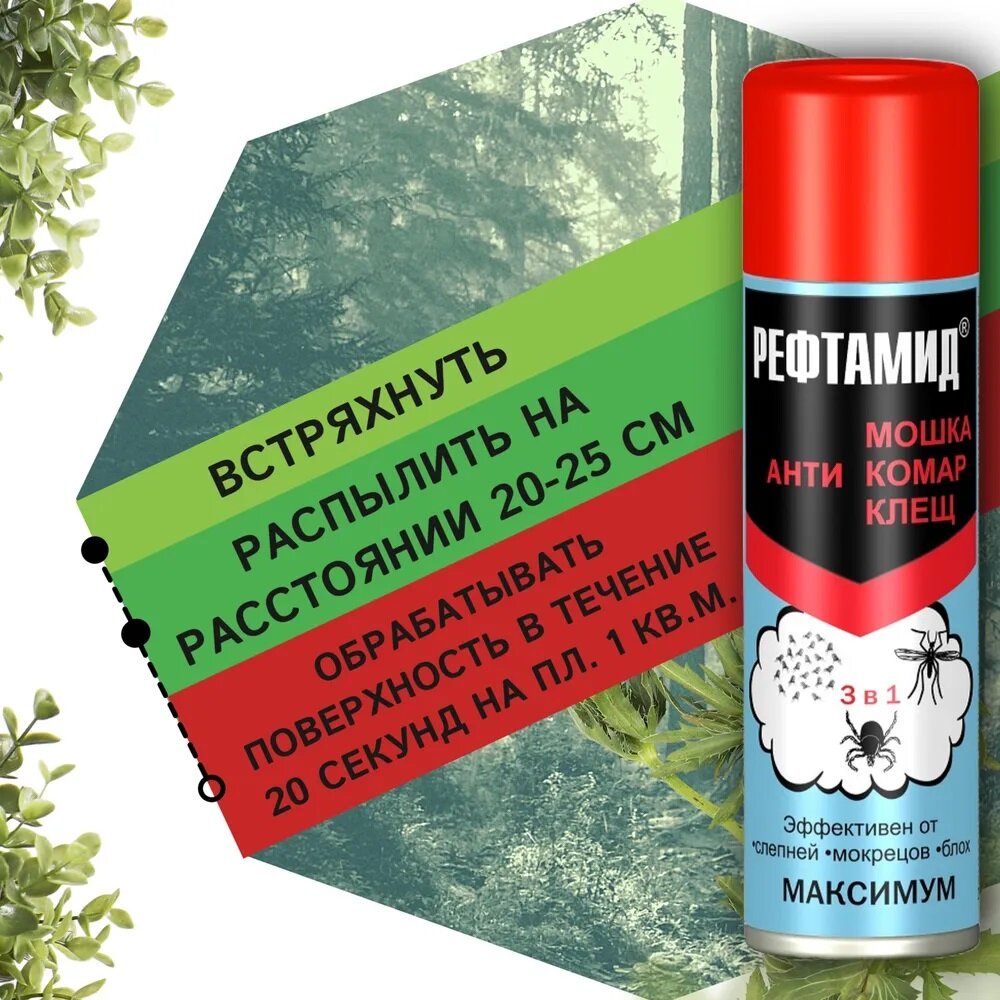 Отзывы на Репеллент Рефтамид "Максимум 3 в 1", аэрозоль, защита от комаров, мошек, клещей (3 шт х 147 мл)