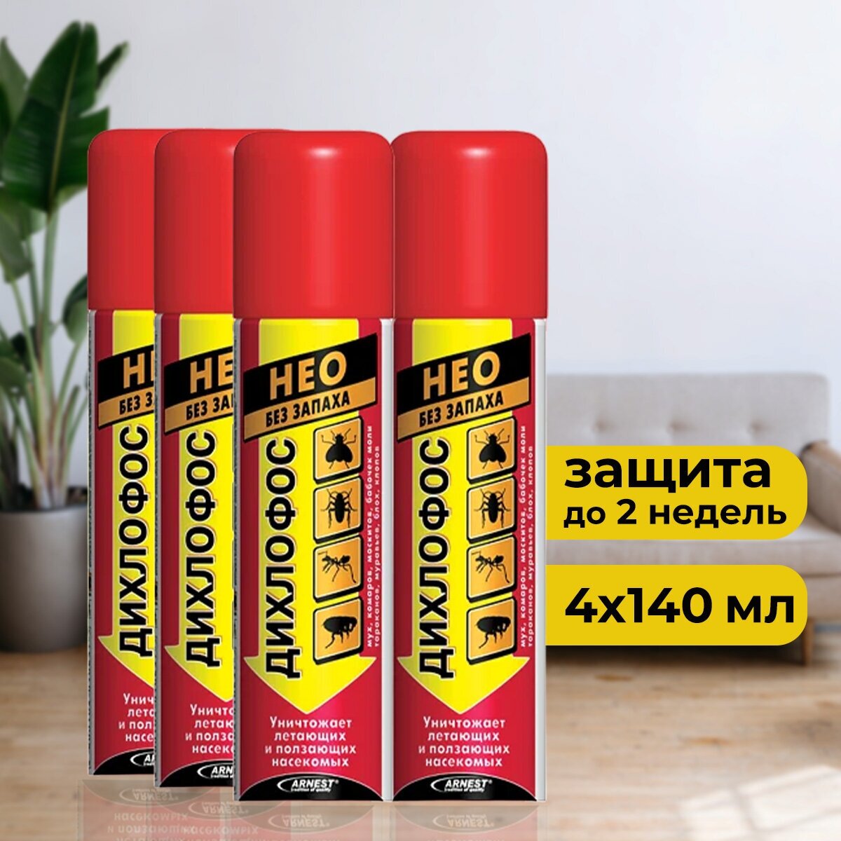 Дихлофос Нео+ от летающий и ползающих насекомых, 140 мл (4 шт) информация: