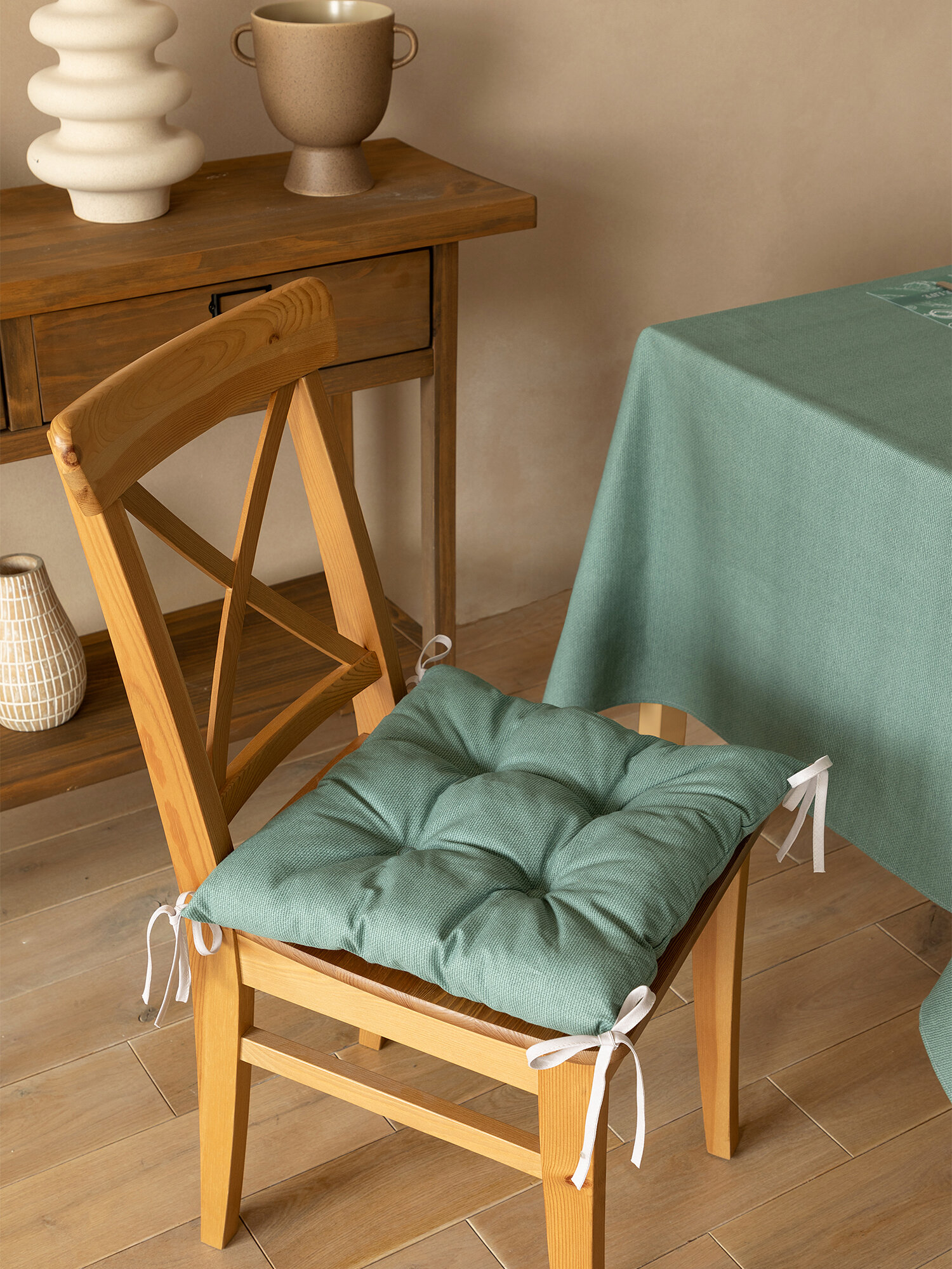 10 цен на Подушка на стул 40х40 квадратная с тафтингом Унисон рис 30004-20 Basic серо-зеленый