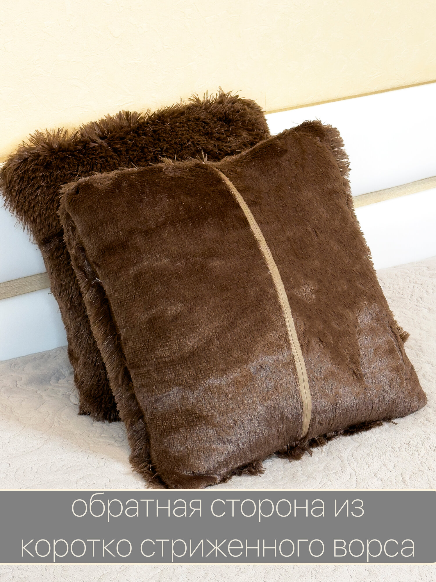 10 цен на Пушистые декоративные наволочки "Травка", Цвет Темно-Коричневый, (Комплект 2 шт. Размер 50/50 см.)