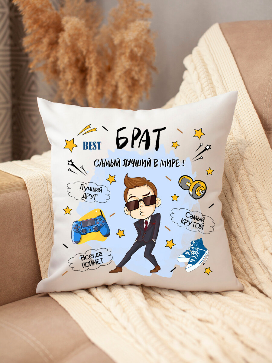 Подушка брату декоративная, с надписью, диванная, съемная наволочка информация: