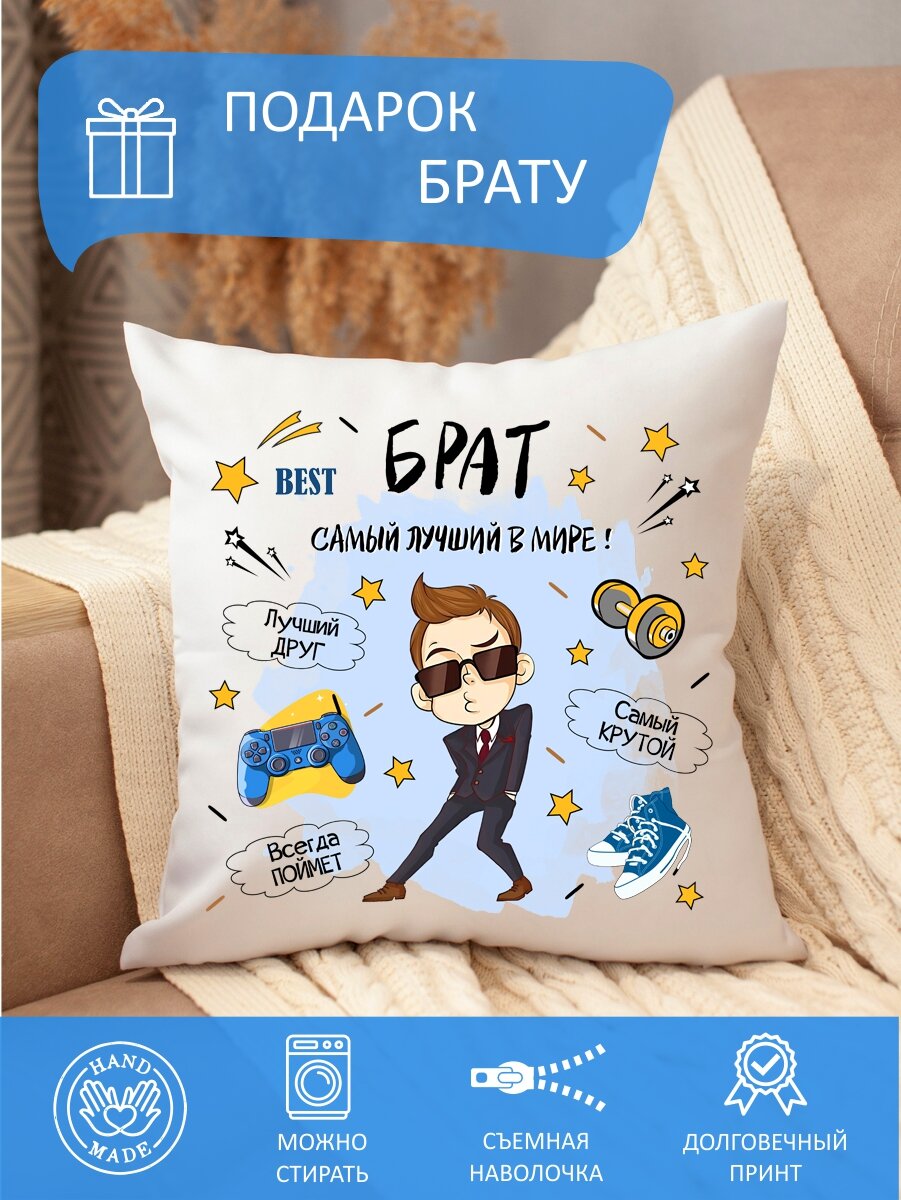 Отзывы на Подушка брату декоративная, с надписью, диванная, съемная наволочка
