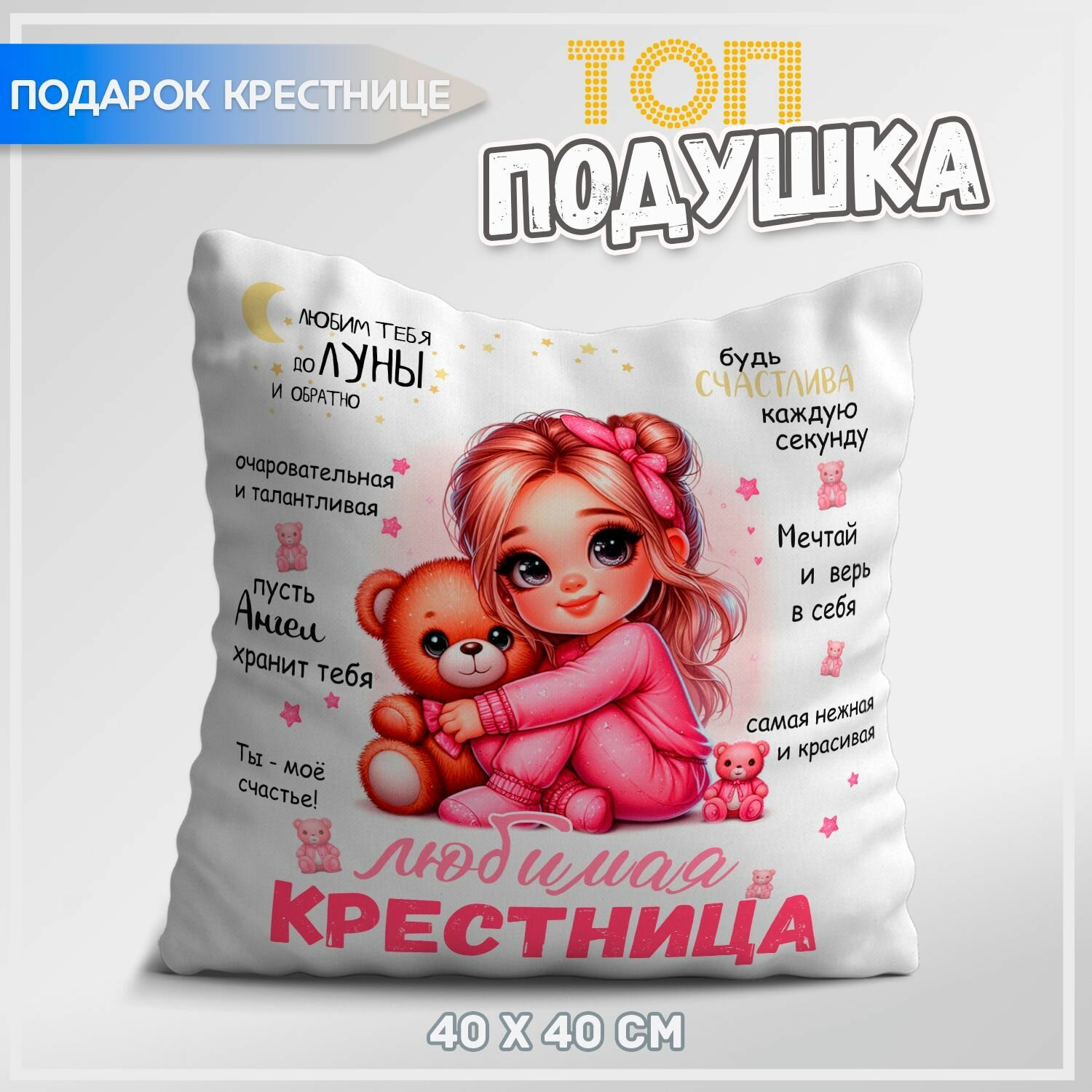 Отзывы на Декоративная подушка топподарок "Для любимой крестницы", габардин, синтепух, 40х40 см