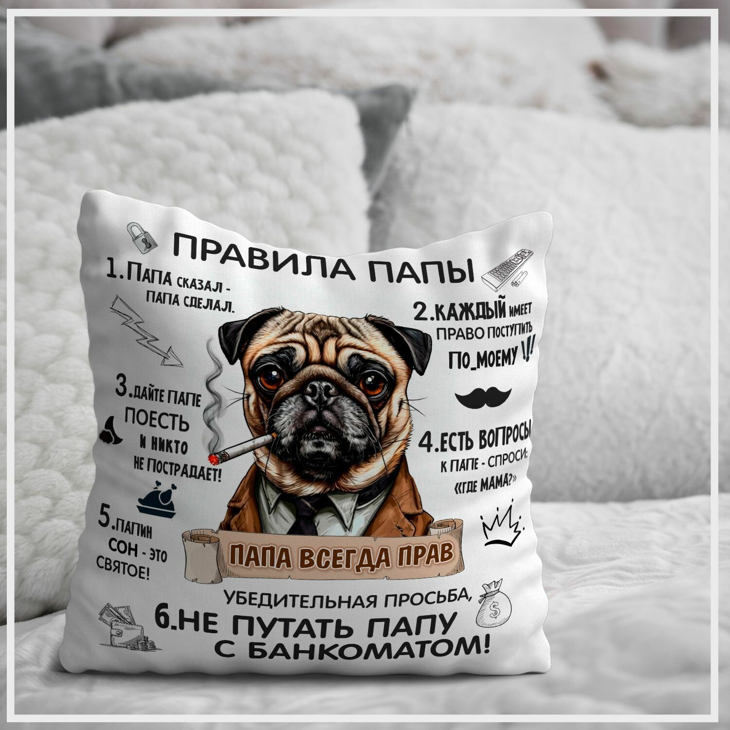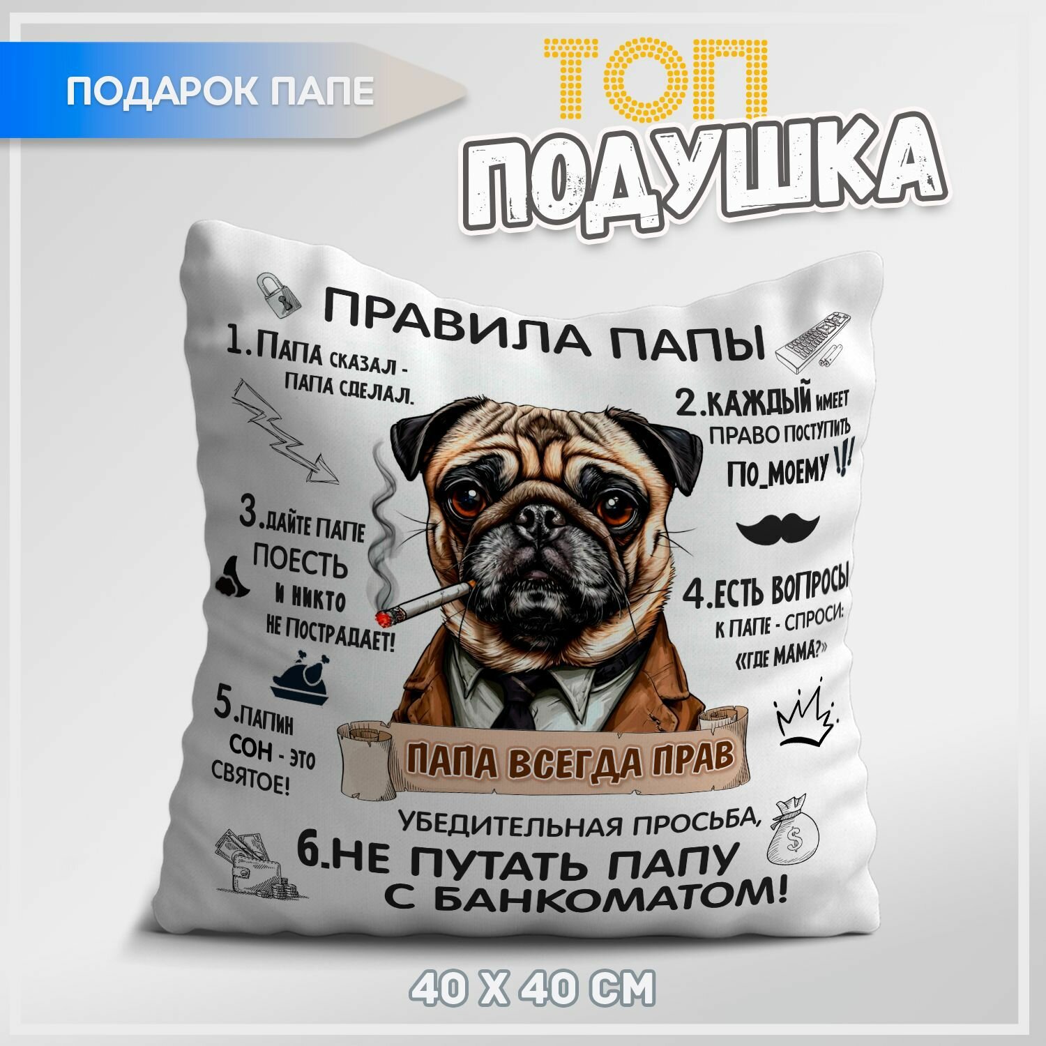 Подушка декоративная топподарок "Правила папы", 40х40 см информация: