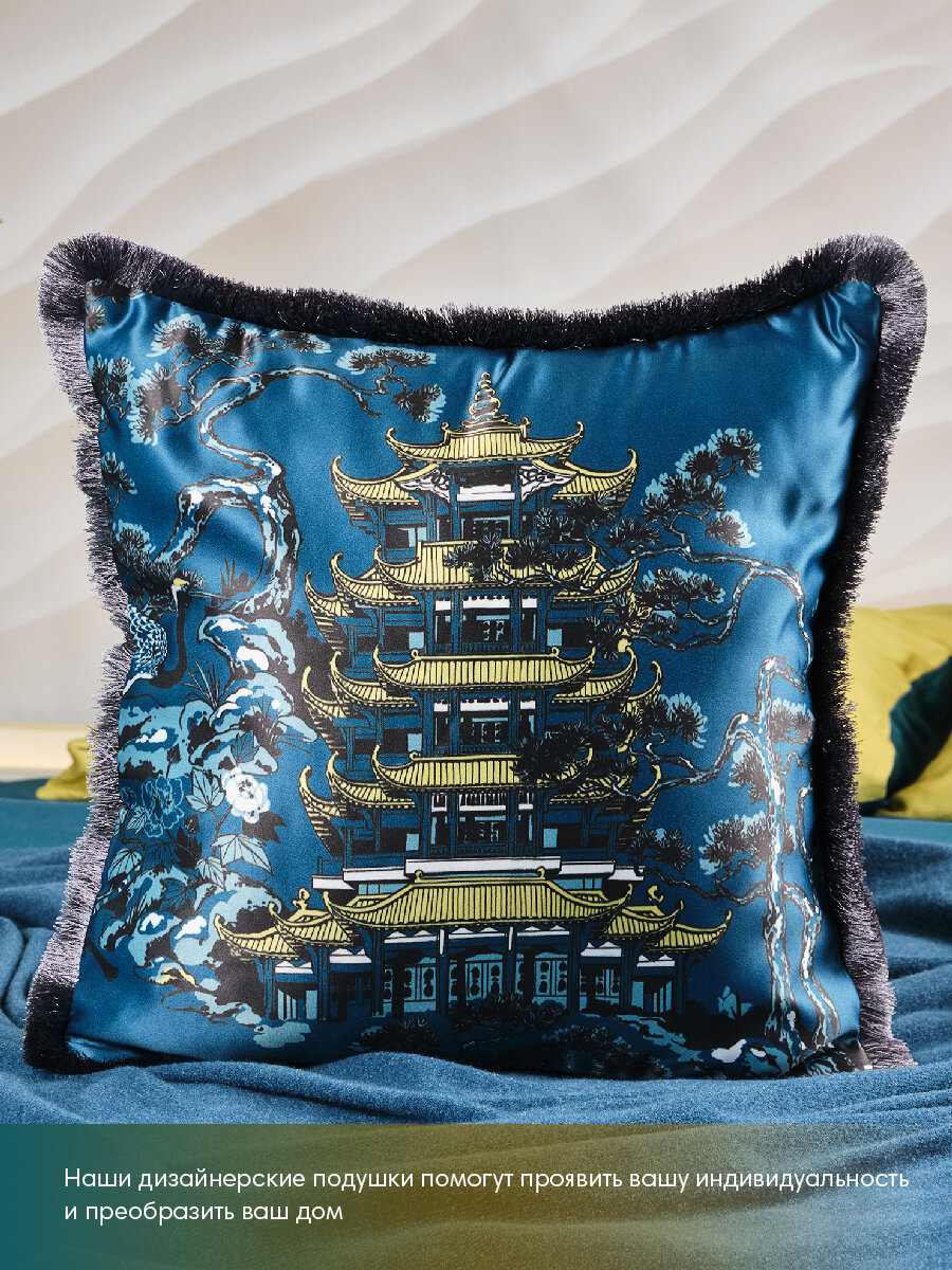 Отзывы на Декоративная подушка Kitayskaya , на потайной молнии, цвет синий желтый, 40х40 см