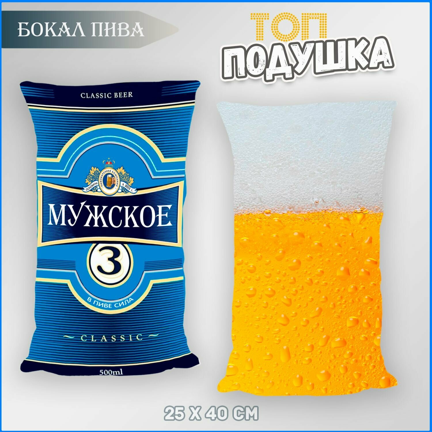 Подушка топподарок "Пивная", декоративная, габардин/синтепух, 25 см x 40 см информация: