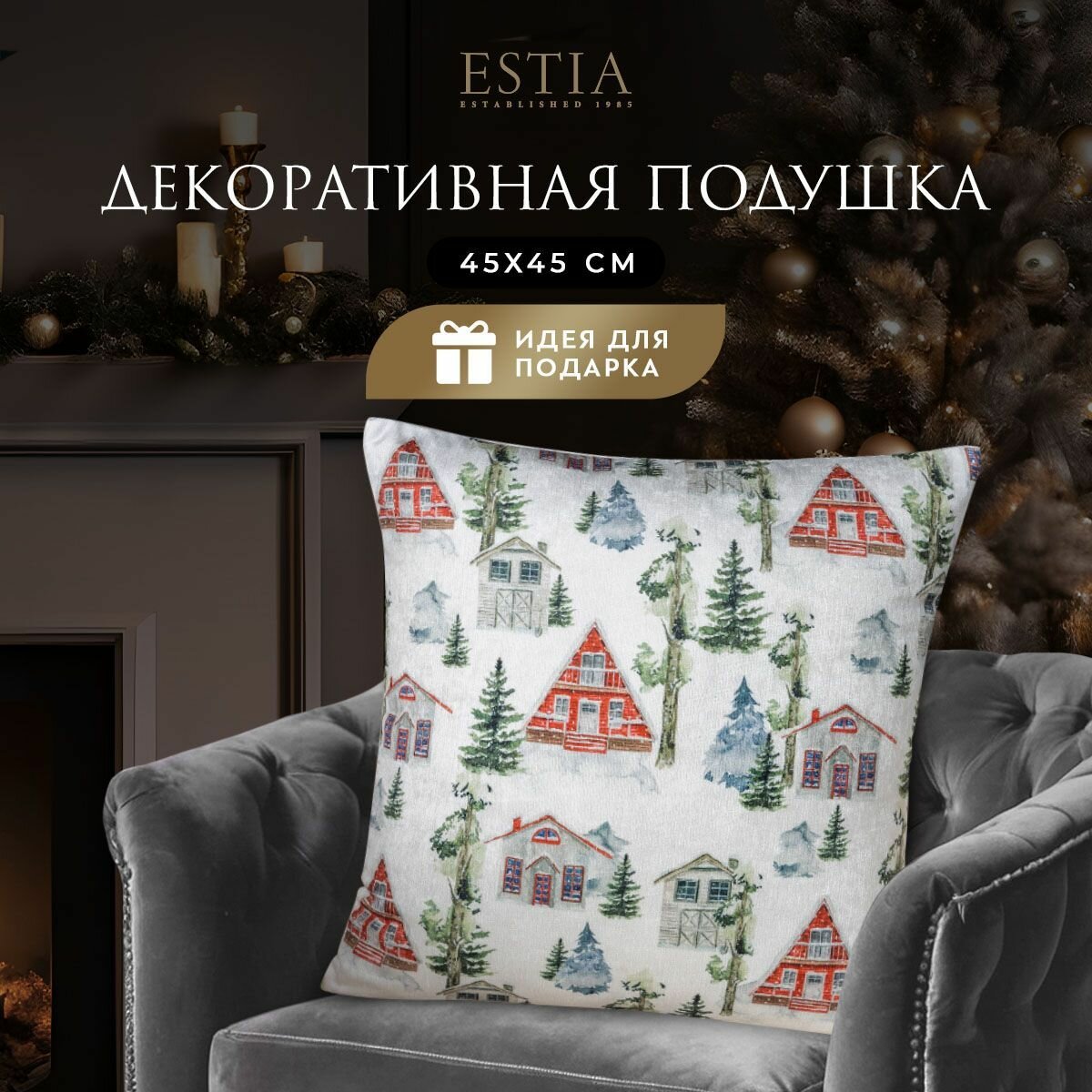 ESTIA Подушка декоративная в подарок "Эрибе" с молнией "Зима в городе", 45x45 информация: