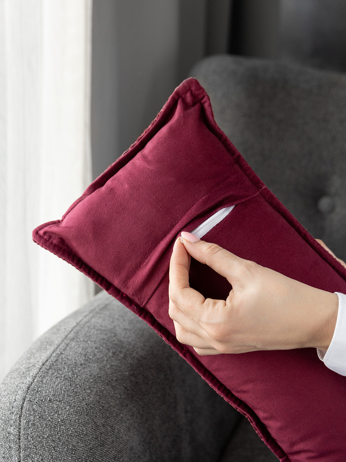 Отзывы на Декоративная подушка DeNASTIA, 20x40 см, шенилловая, съемная наволочка, бордовая