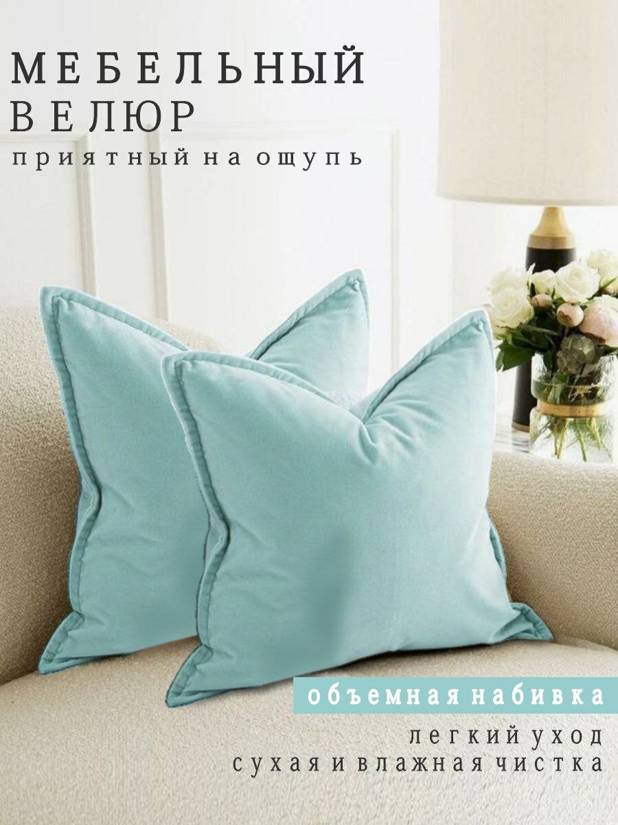 Отзывы на Подушки декоративные Nemos 40x40, 2 штуки, светло-голубые, квадратные, из велюра