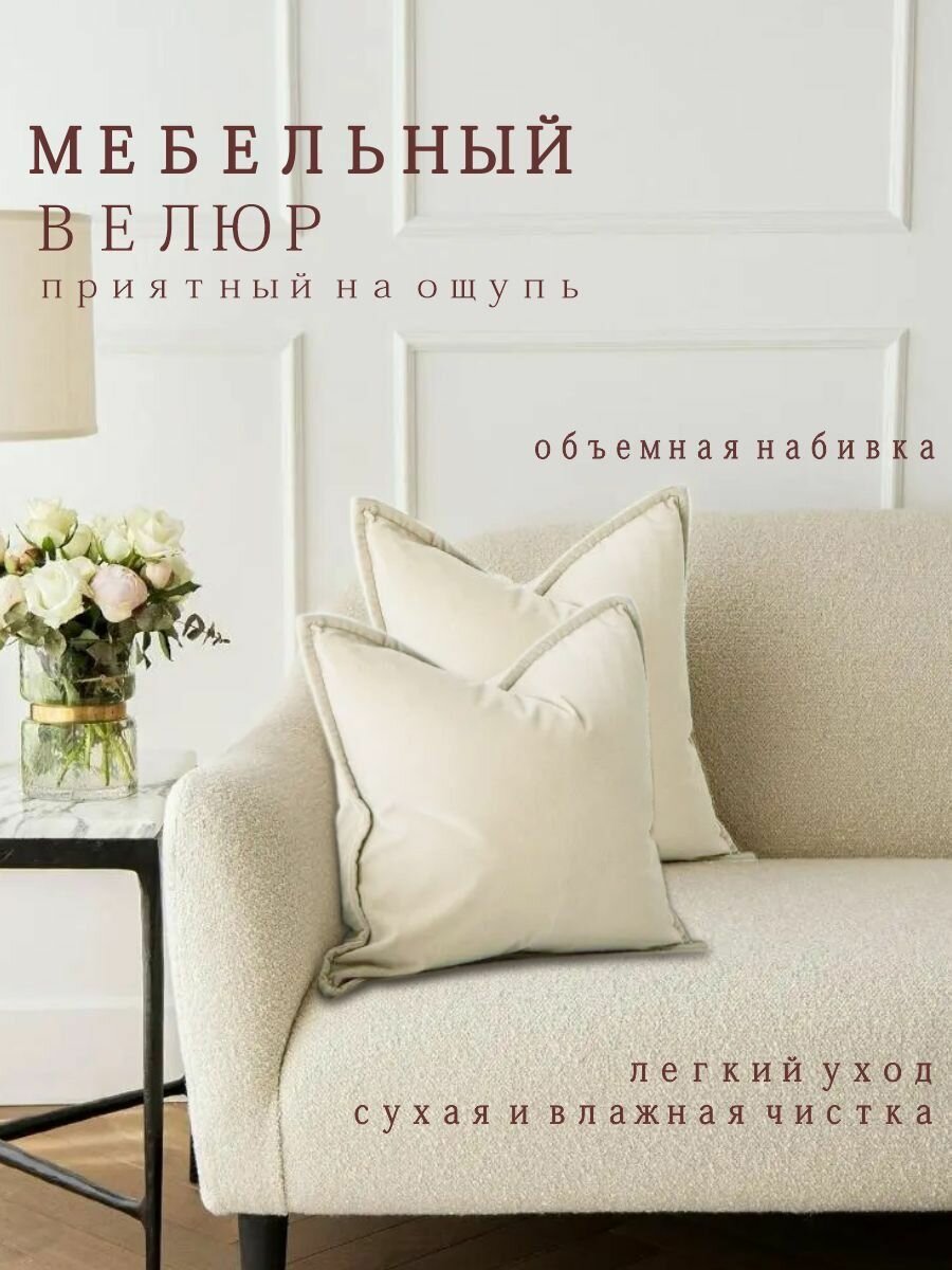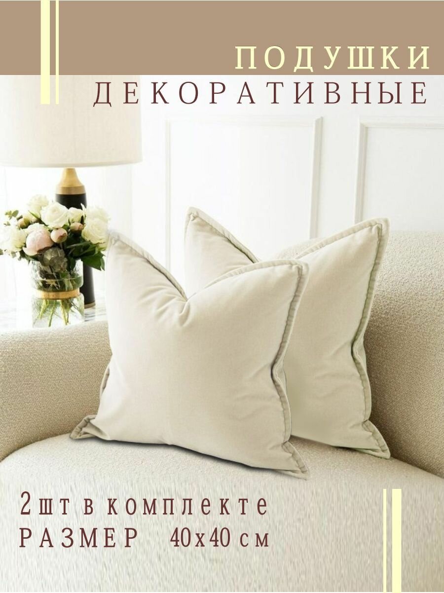 Отзывы на Подушки декоративные Nemos 40x40, 2 штуки, молочные, квадратные, из велюра