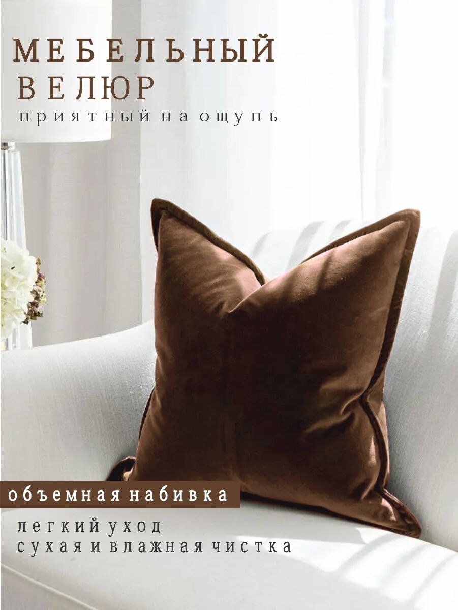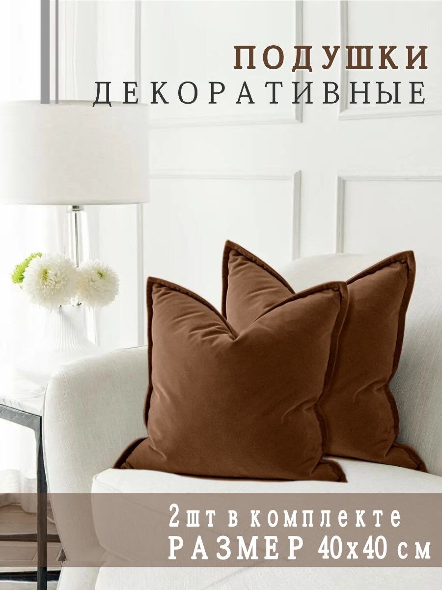 Отзывы на Подушки декоративные Nemos 40x40, 2 штуки, коричневые, квадратные, из велюра