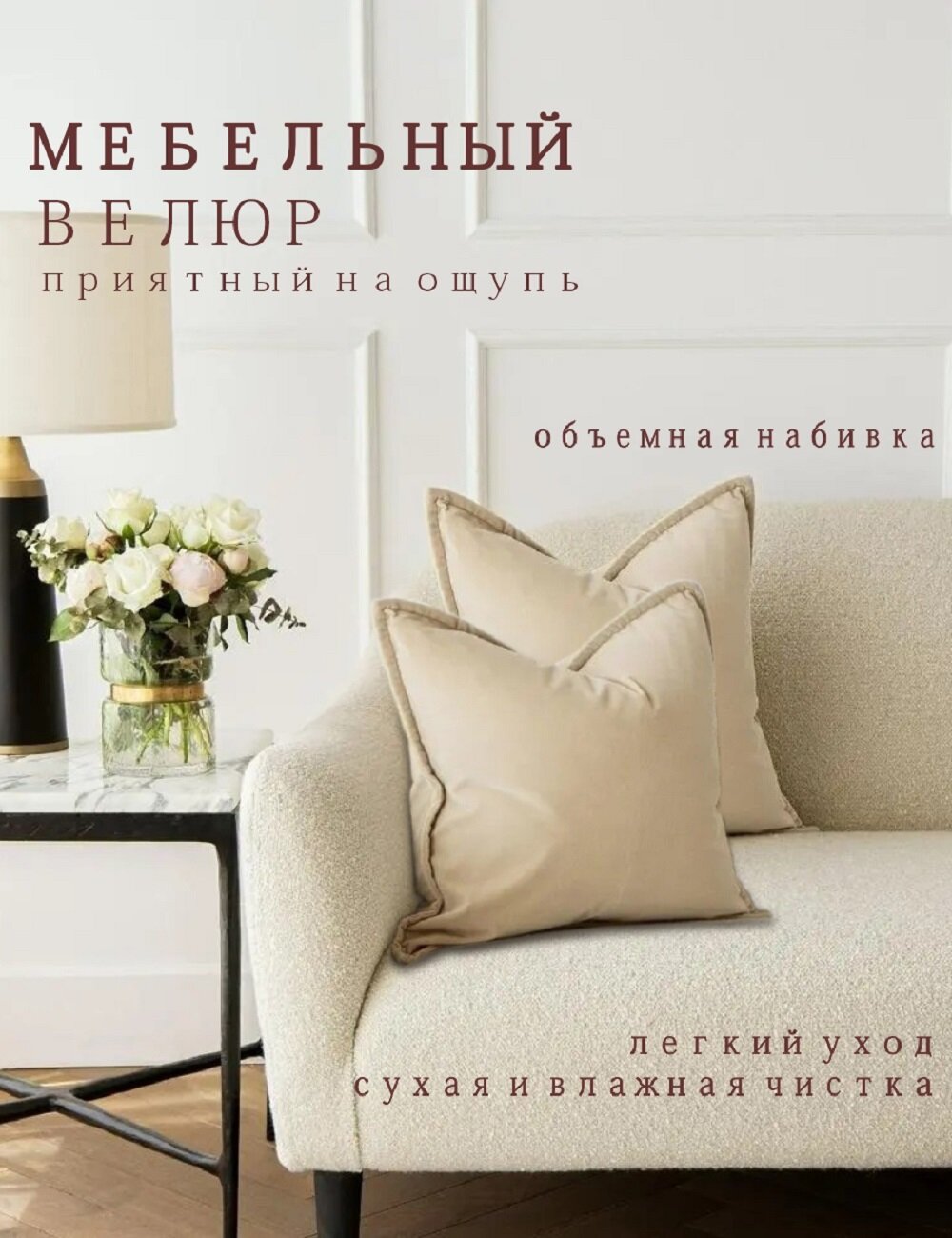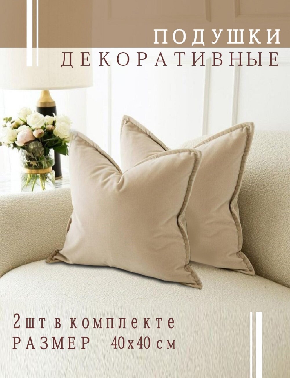 Отзывы на Подушки декоративные Nemos 40x40, 2 штуки, бежевый, квадратные, из велюра