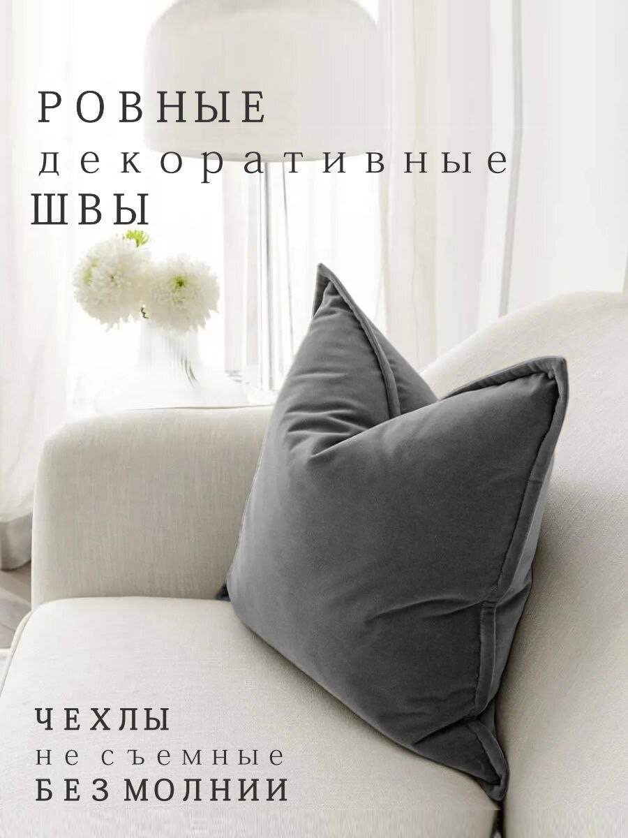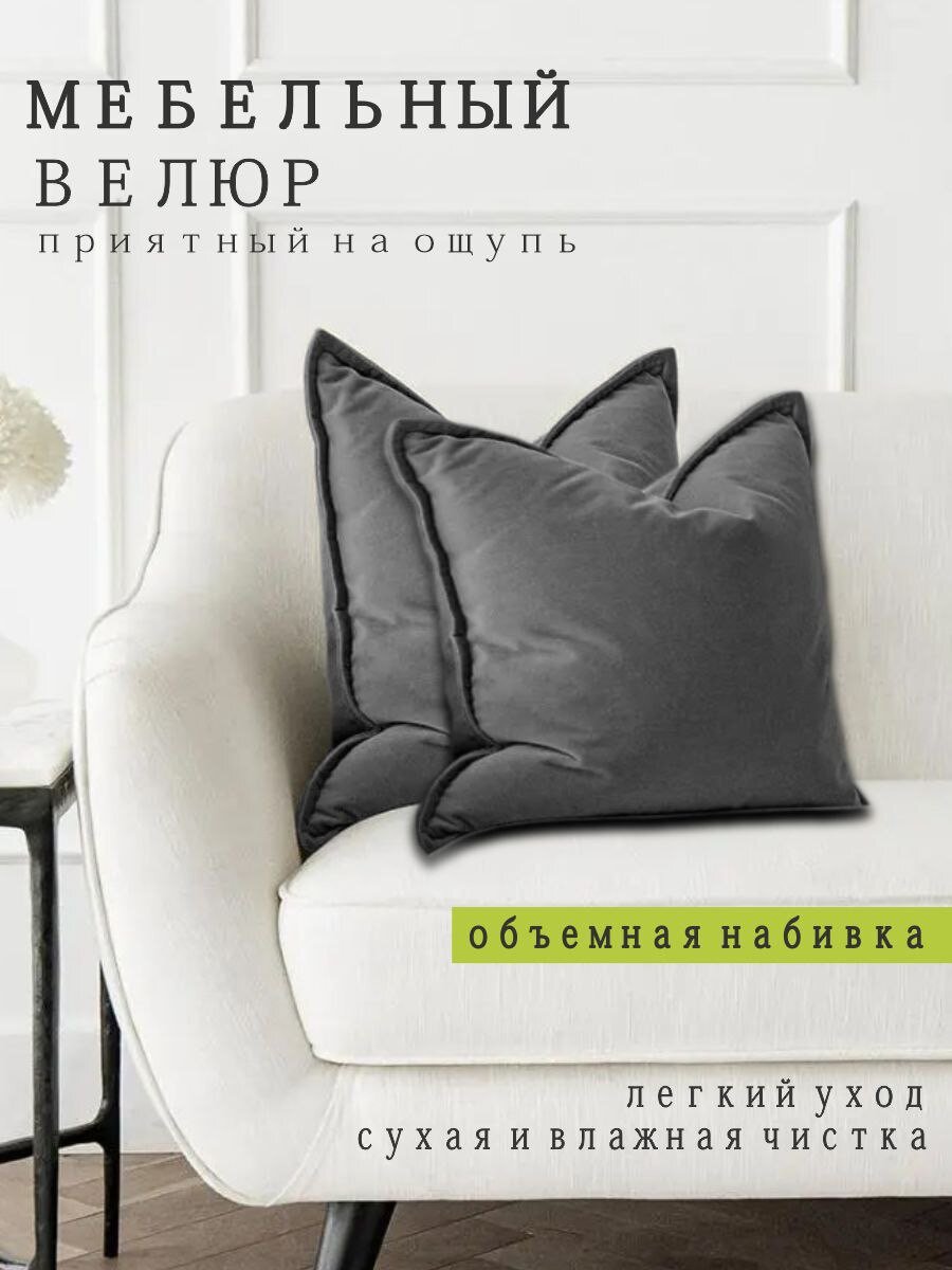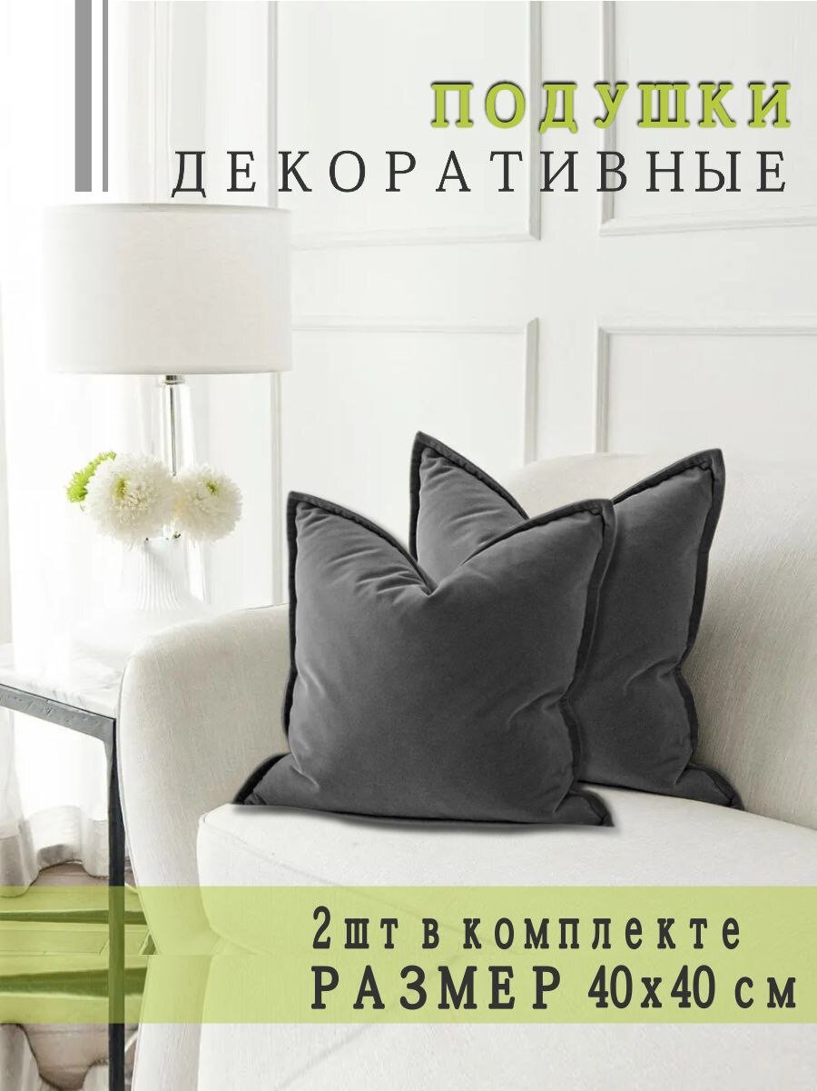 Отзывы на Подушки декоративные Nemos 40x40, 2 штуки, темно-серый, квадратные, из велюра