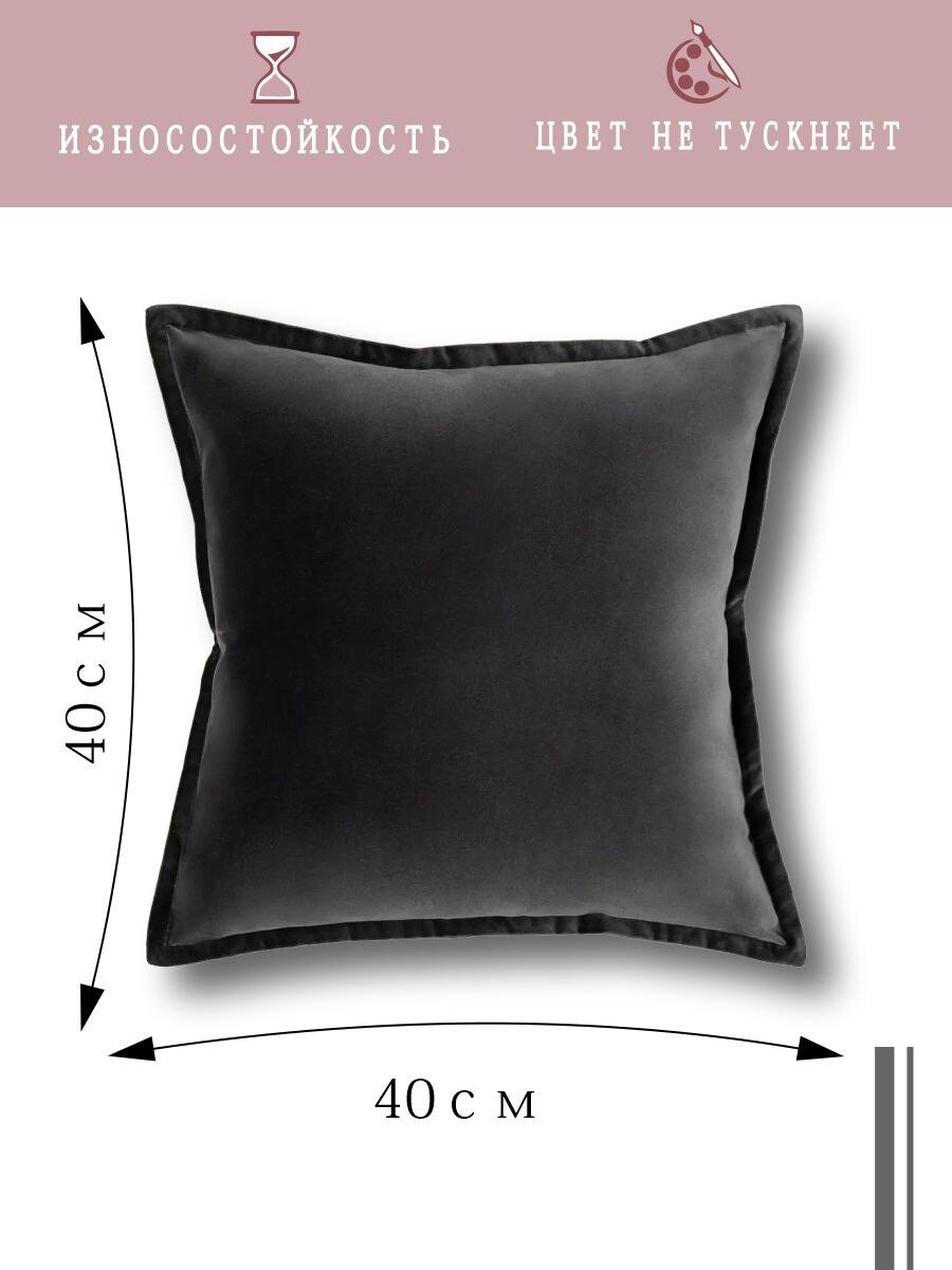 Подушки декоративные Nemos 40x40, 2 штуки, темно-серый, квадратные, из велюра 1 900 ₽