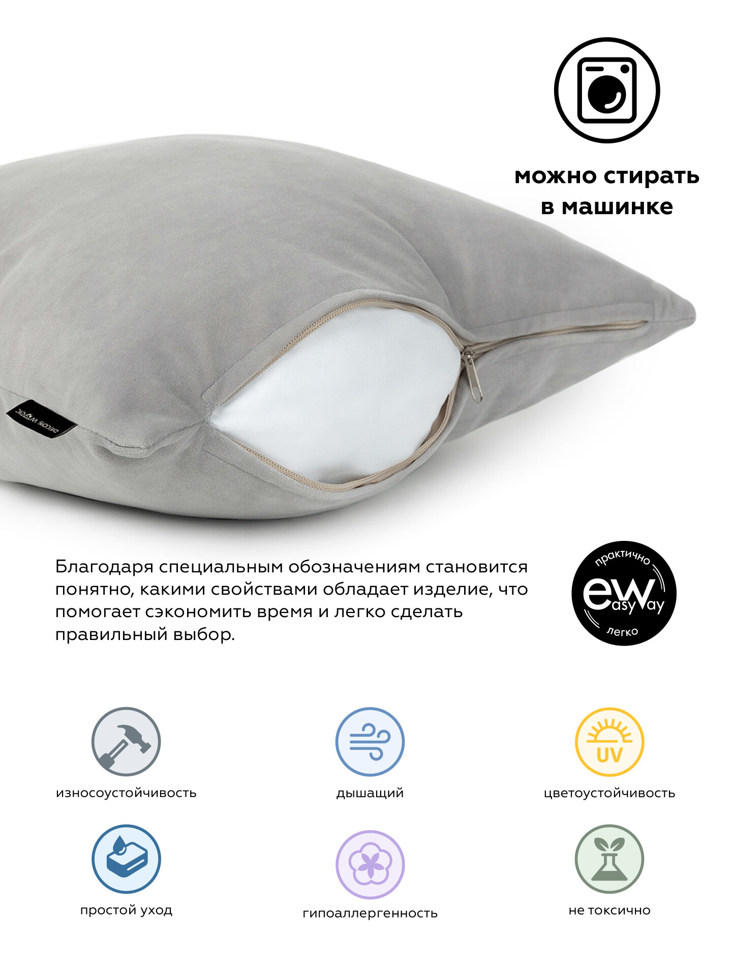 Подушка декоративная 45х45 см ULTRA SAND велюр, на молнии 1 177 ₽