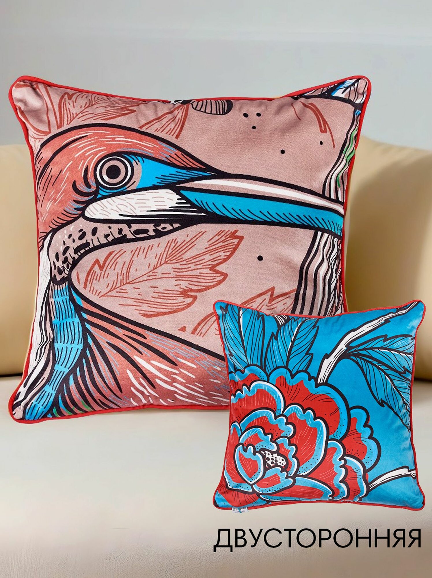Декоративная подушка бархатная 50*50 принт птицы информация: