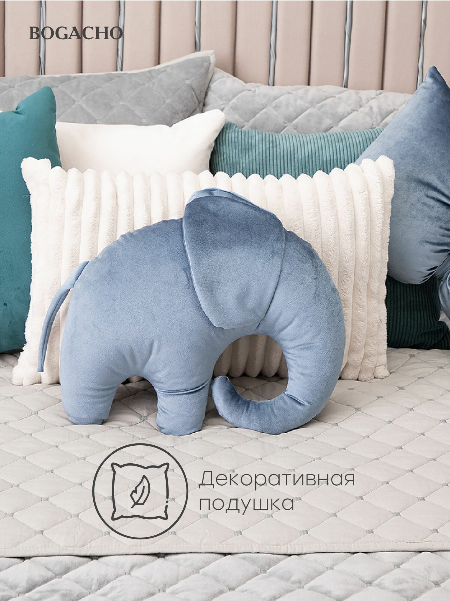 Отзывы на Мягкая декоративная подушка игрушка на диван и кресло BOGACHO Слон из велюра
