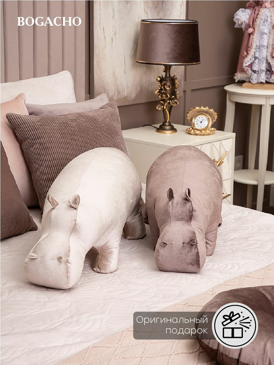 10 цен на Мягкая декоративная подушка игрушка на диван и кресло BOGACHO Бегемот из велюра