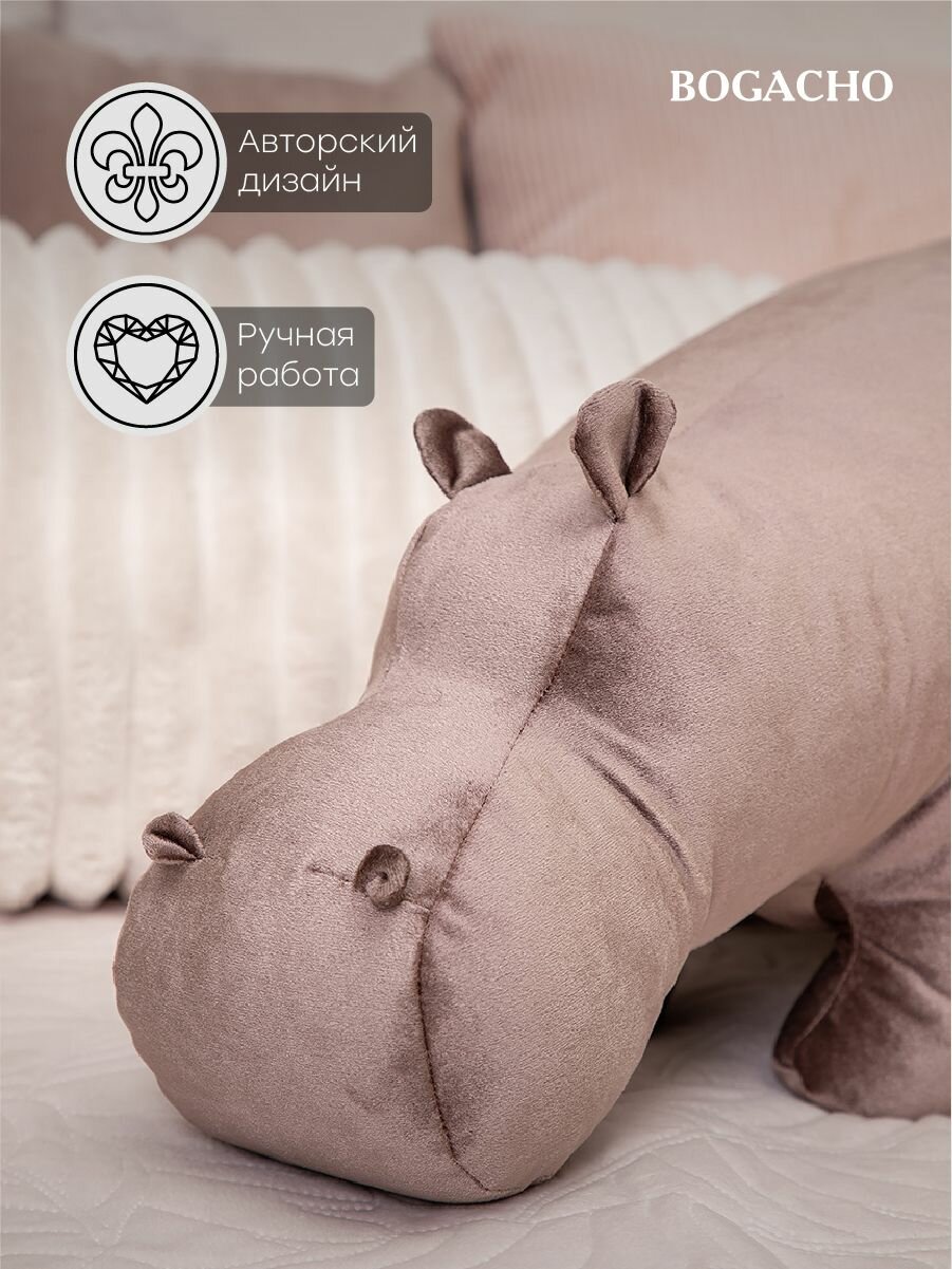 Мягкая декоративная подушка игрушка на диван и кресло BOGACHO Бегемот из велюра информация: