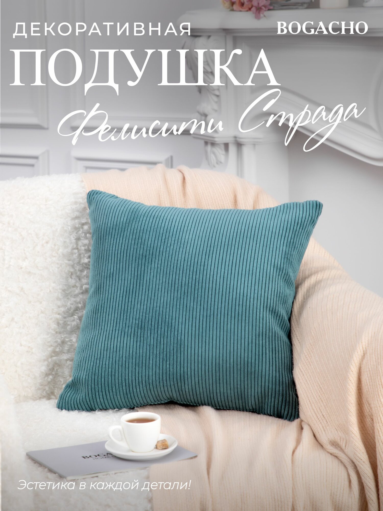Мягкая декоративная подушка на диван и кресло BOGACHO Фелисити Страда из микровелюра информация: