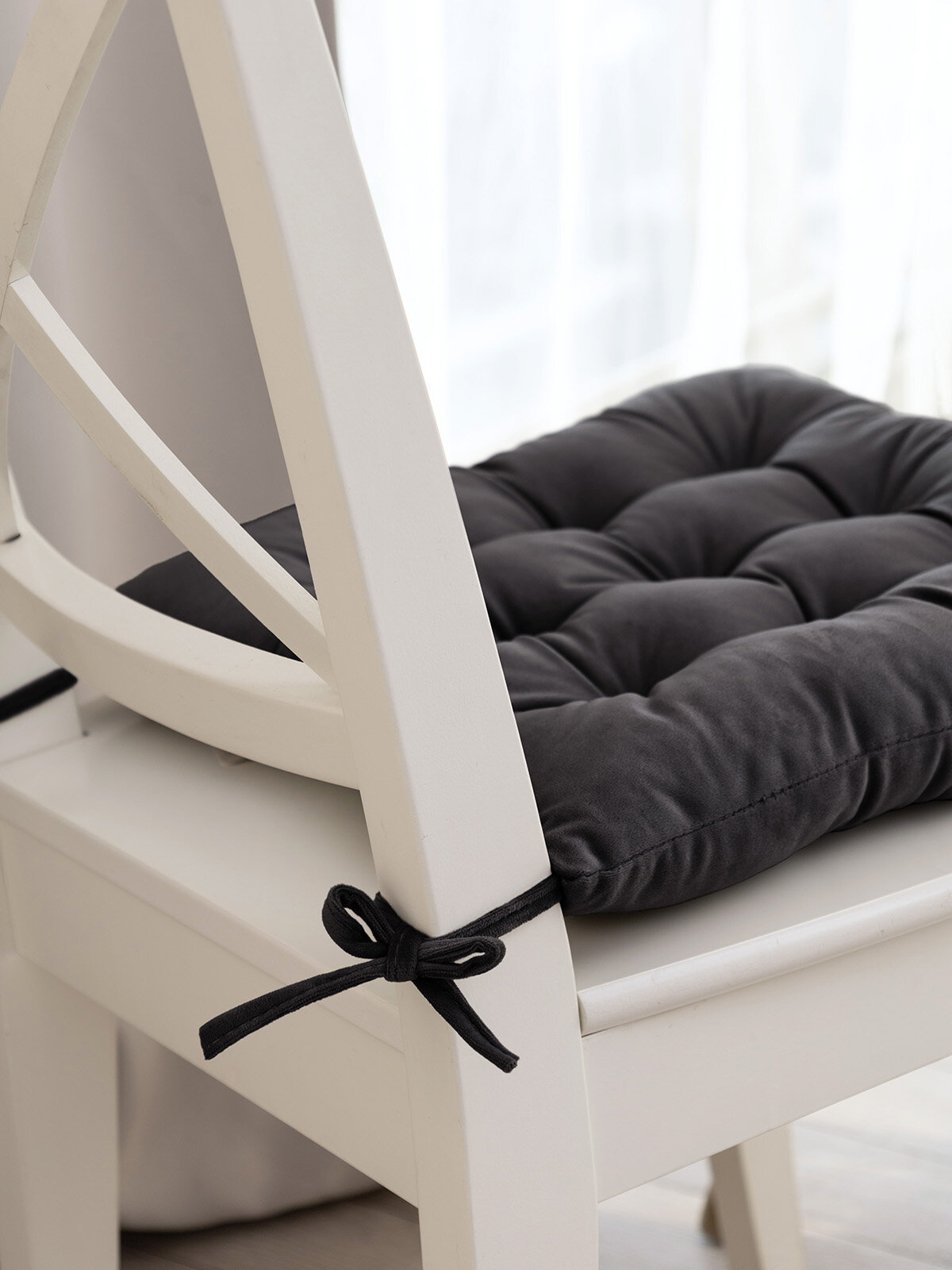 Подушка на стул DeNASTIA 40х40 велюр, 100%ПЭ, тёмно-серый информация: