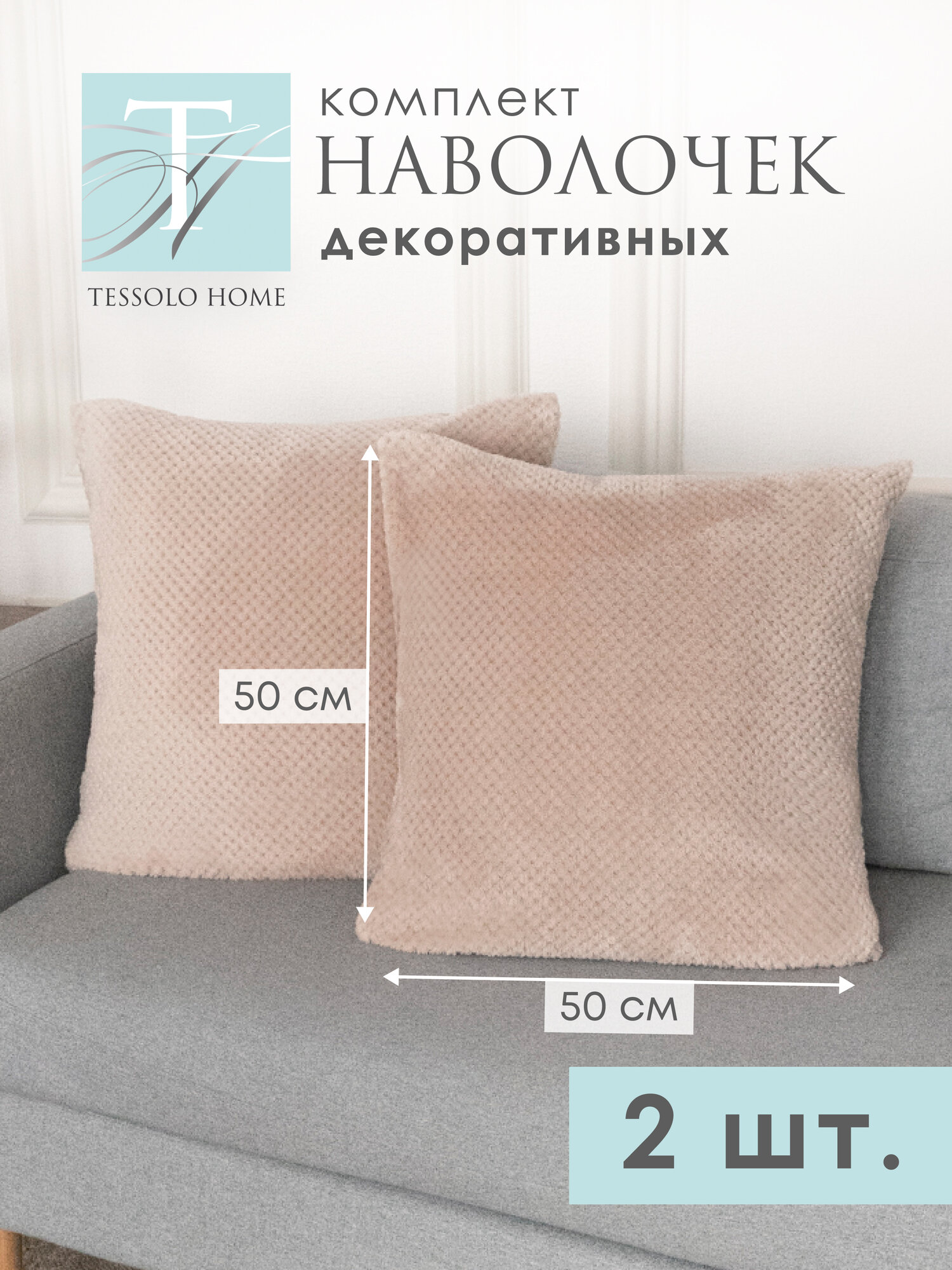 Декоративные наволочки 50х50 , 2 шт, микровелюр, "Жаккард", бежевый информация: