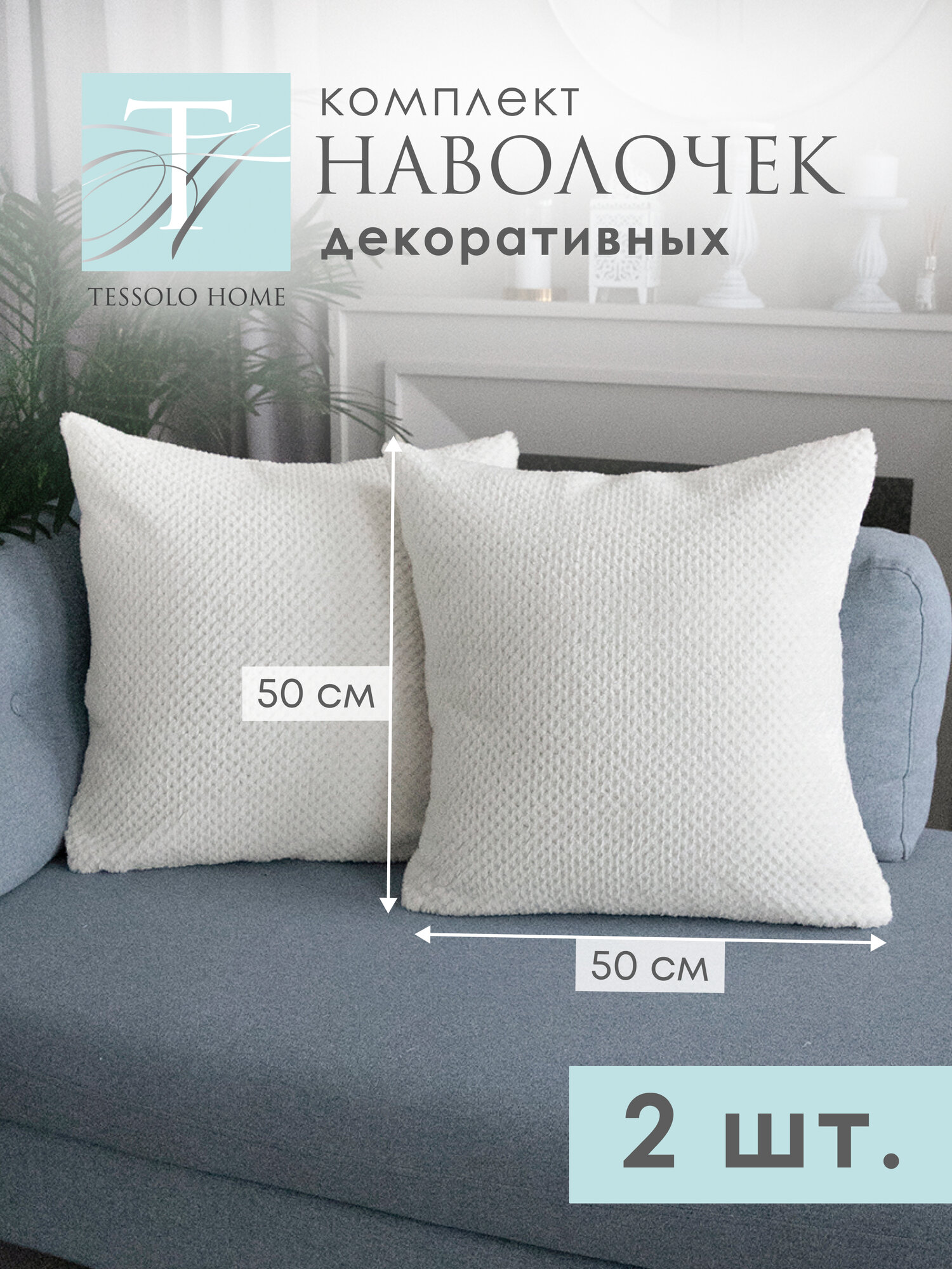 10 цен на Декоративные наволочки 50х50 на подушки MICRO VELUR, "Жаккард", 2 шт. молочный