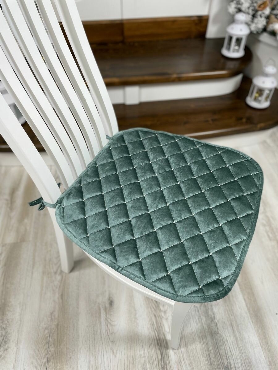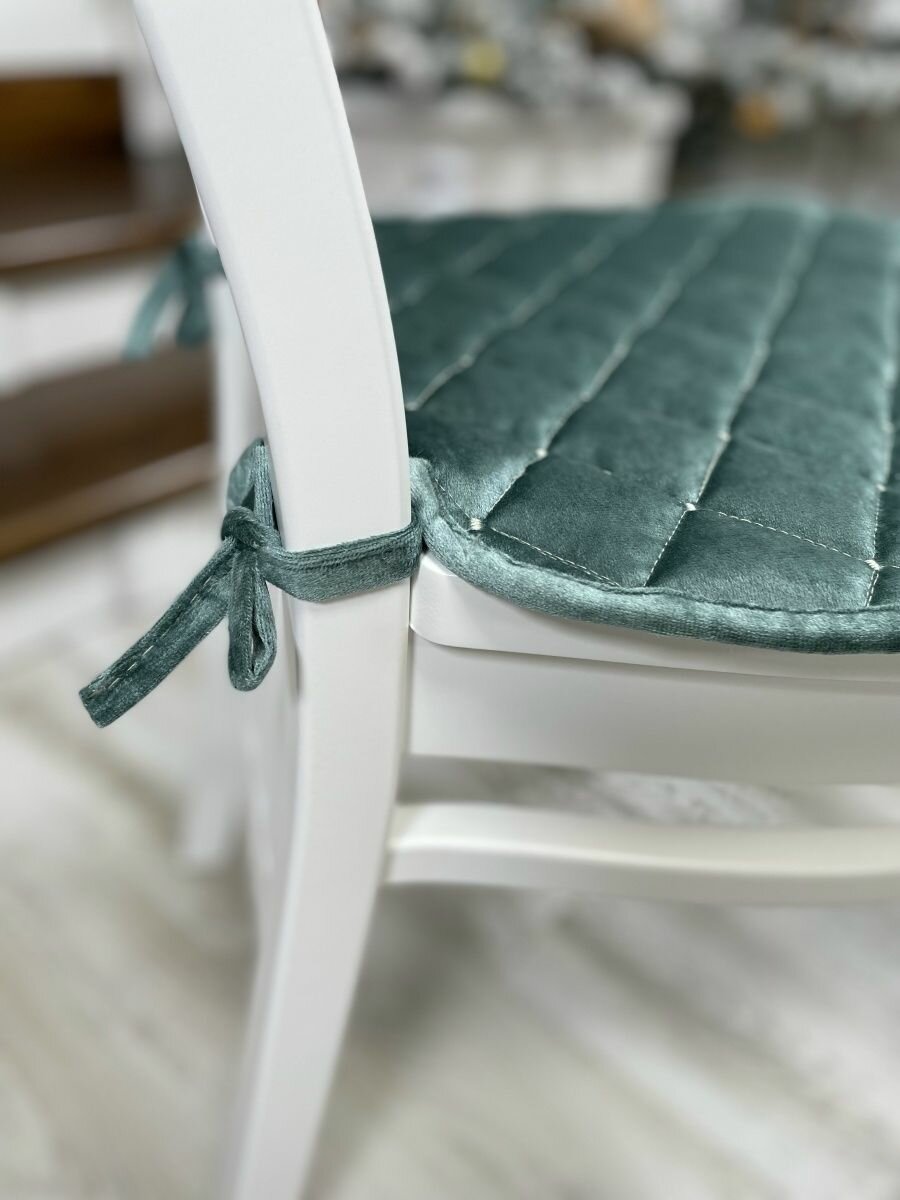 10 цен на Подушка сидушка на стул на завязках . Чехлы на стулья размер 45Х45. Цвет- бирюзово-зеленый. .