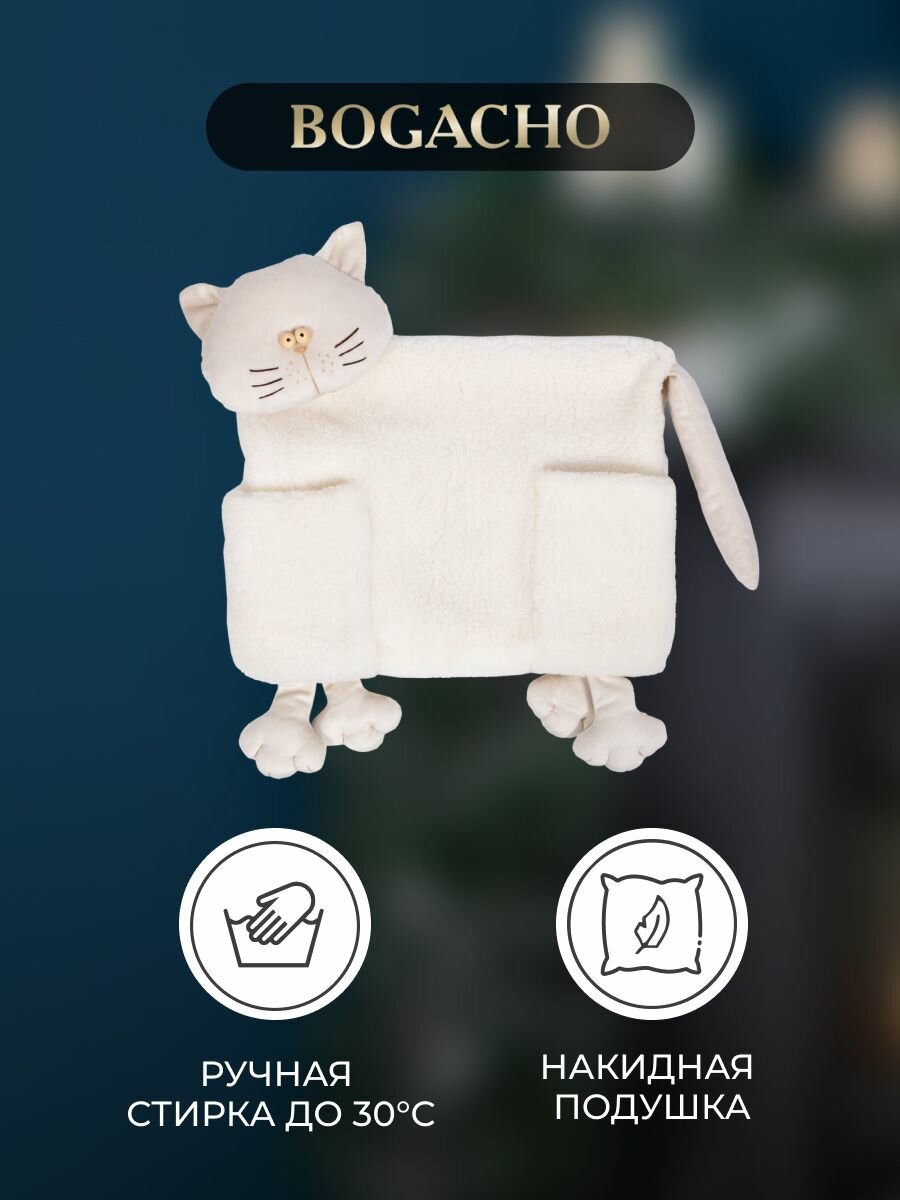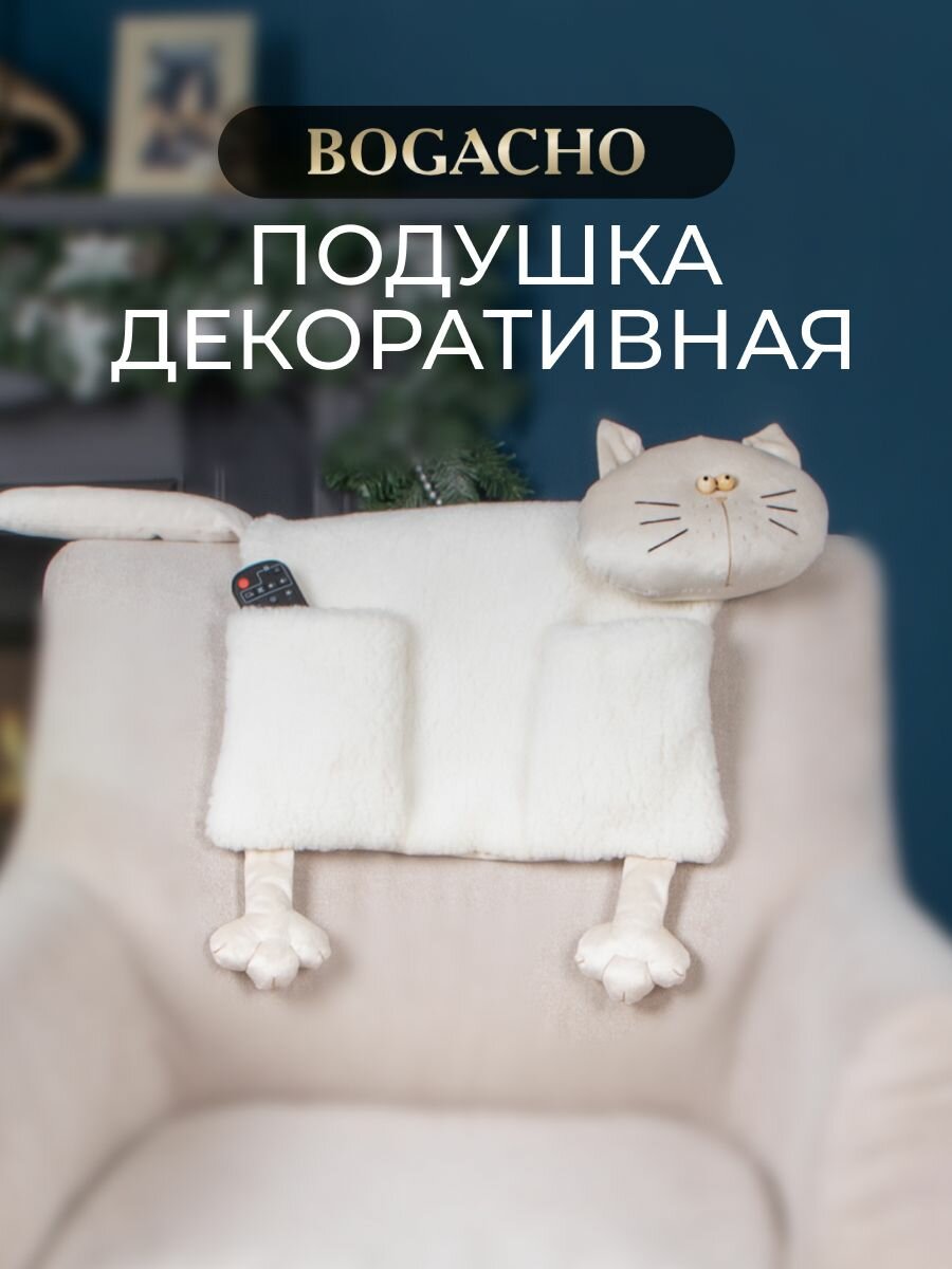 Декоративная подушка на спинку и подлокотник дивана BOGACHO кот Джесси с карманами для пульта и другой мелочи информация: