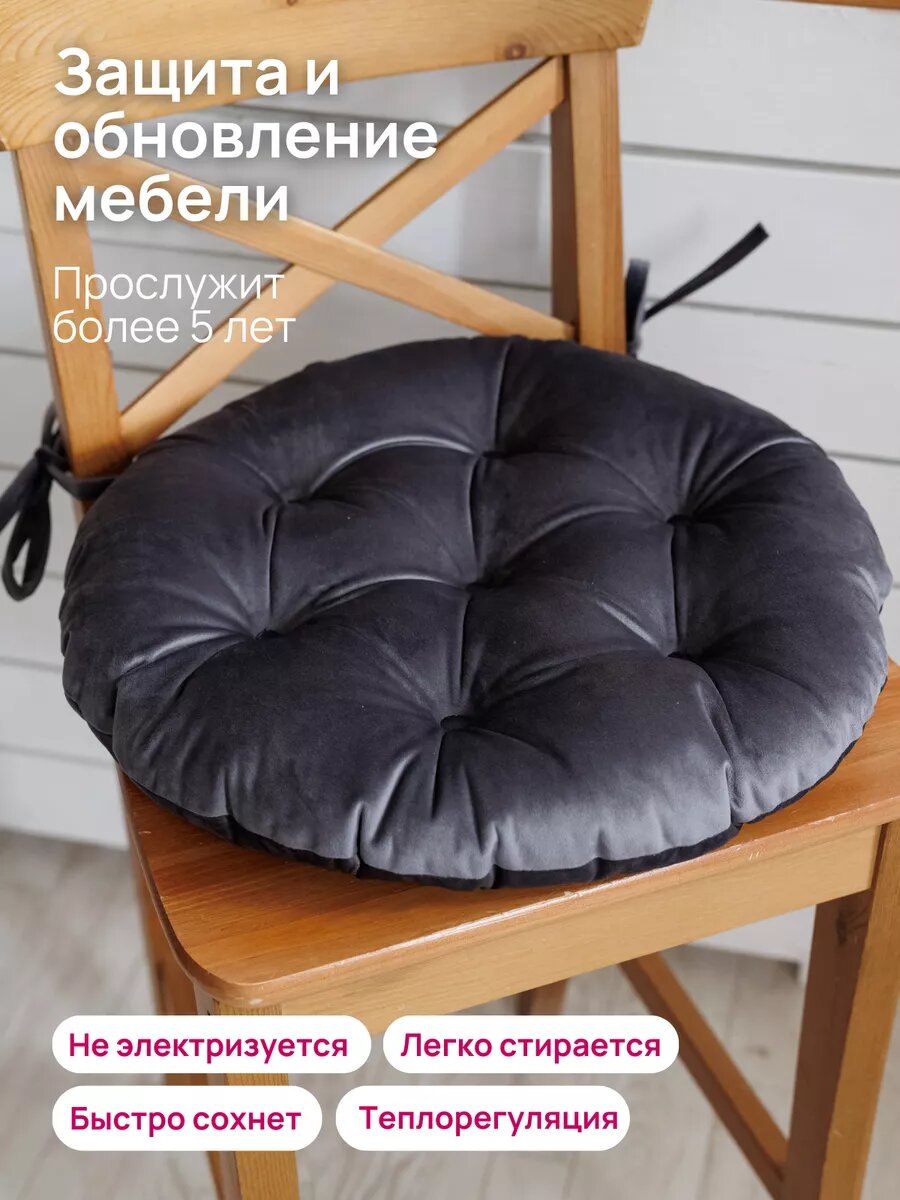 Отзывы на Подушка на стул ALBERICA, 40x40 см, круглая, цвет стальной, синтепух