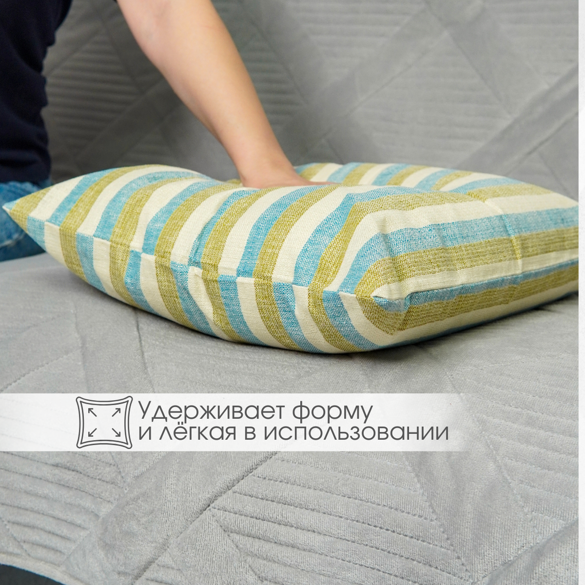 Декоративная подушка 40х40 см, голубой/зеленый/бежевый в полоску информация: