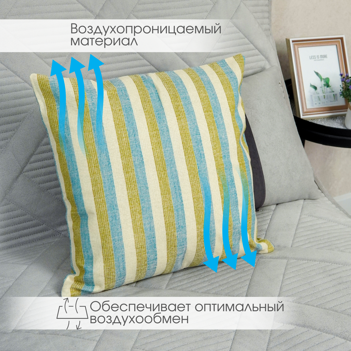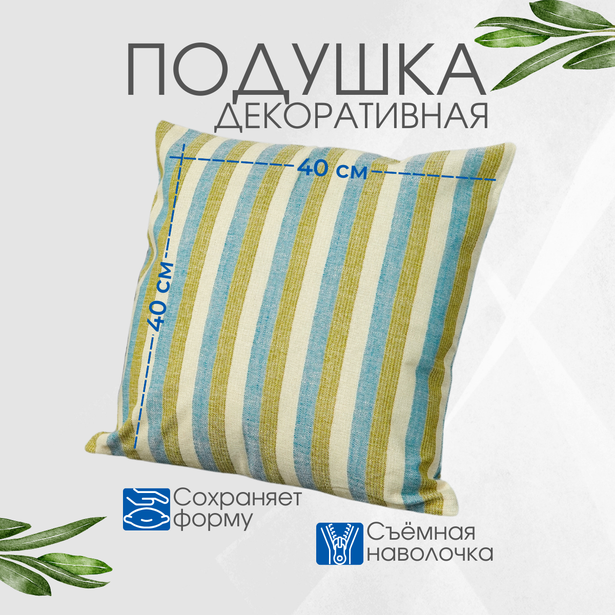 Отзывы на Декоративная подушка 40х40 см, голубой/зеленый/бежевый в полоску